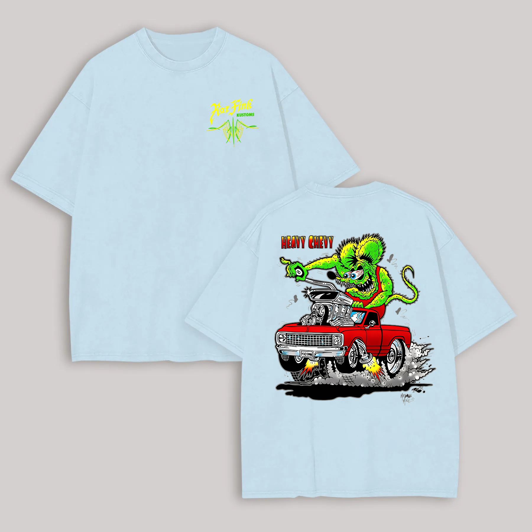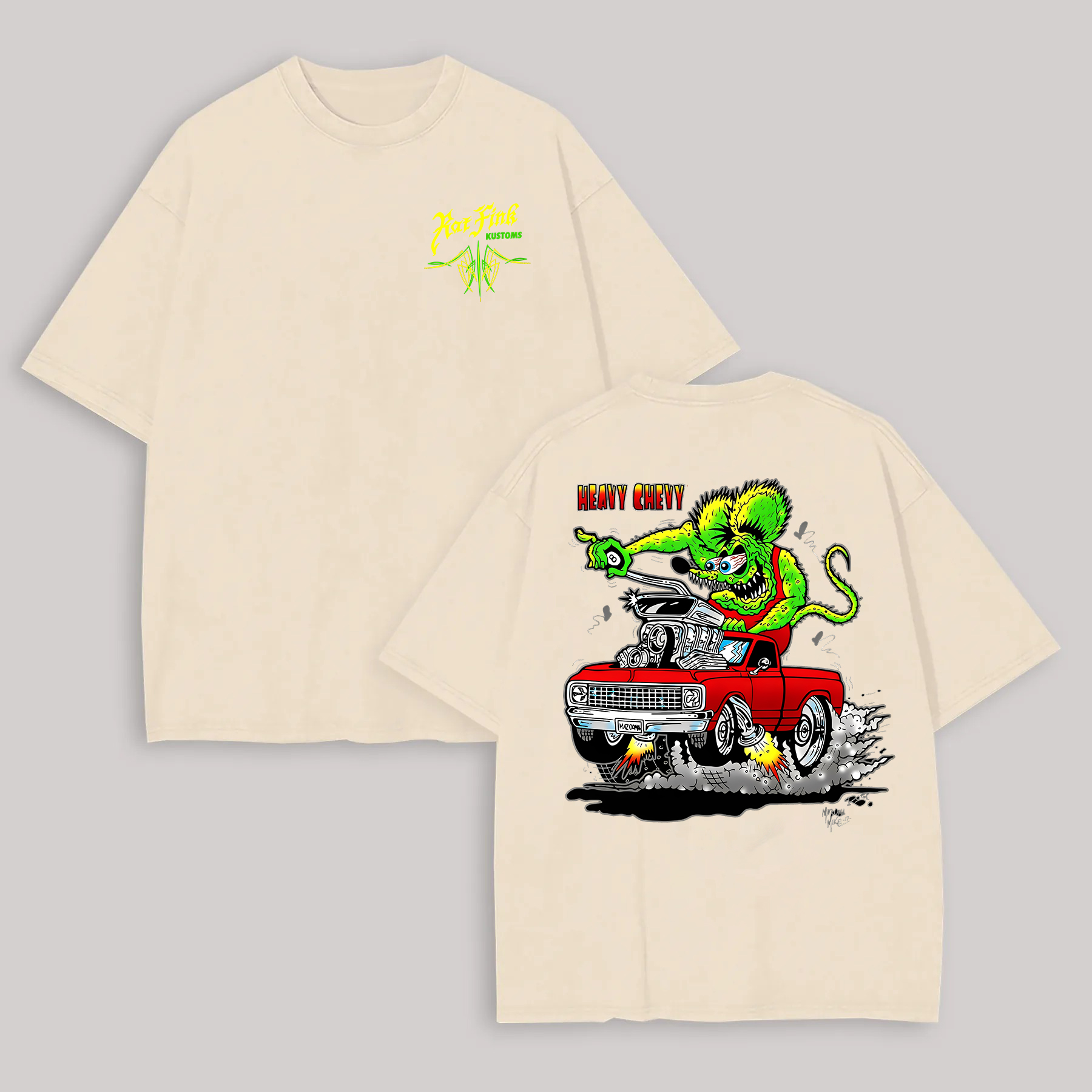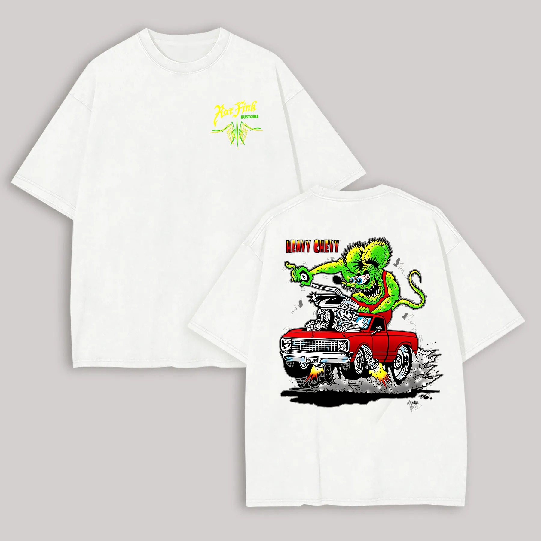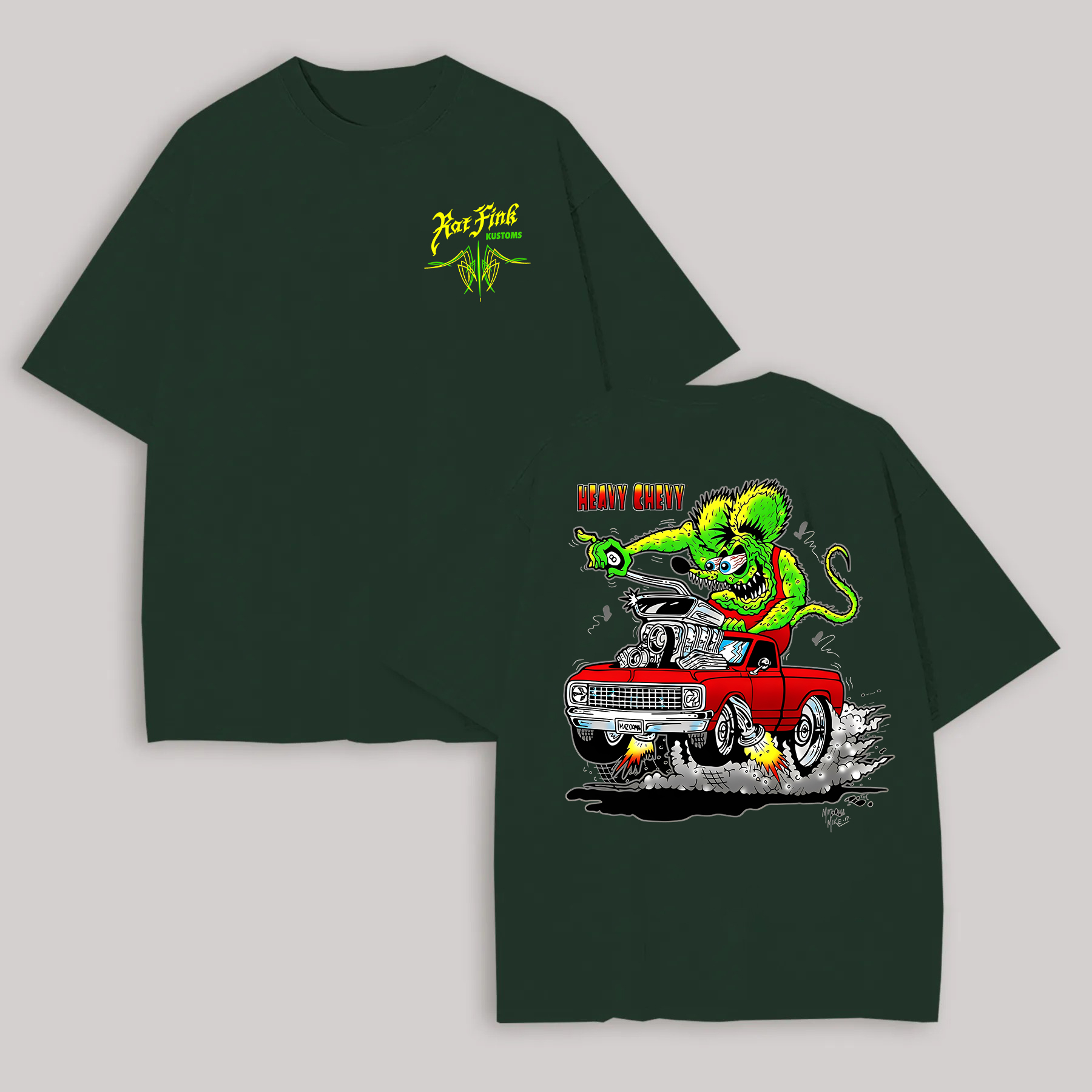 Hot Fink Kustoms Heavy Chevy Car & Monster Printed Men's T-shirt