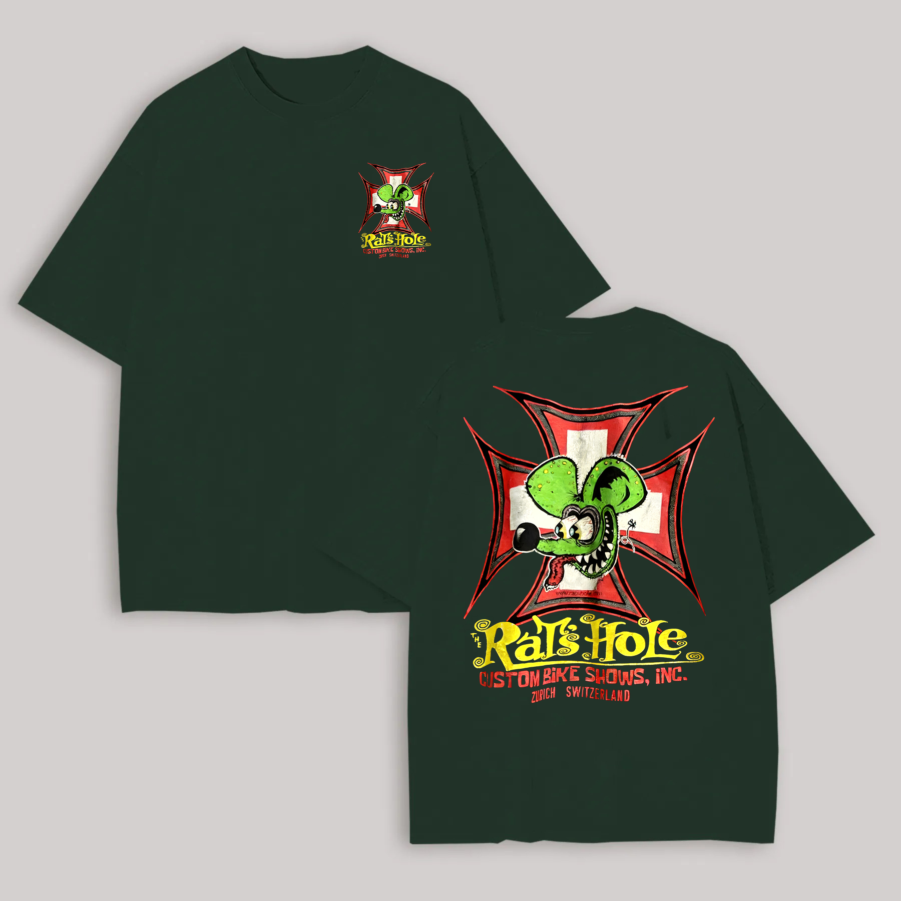 Rat's Hole Custom Bike Show Green Mouse Printed Men's T-shirt