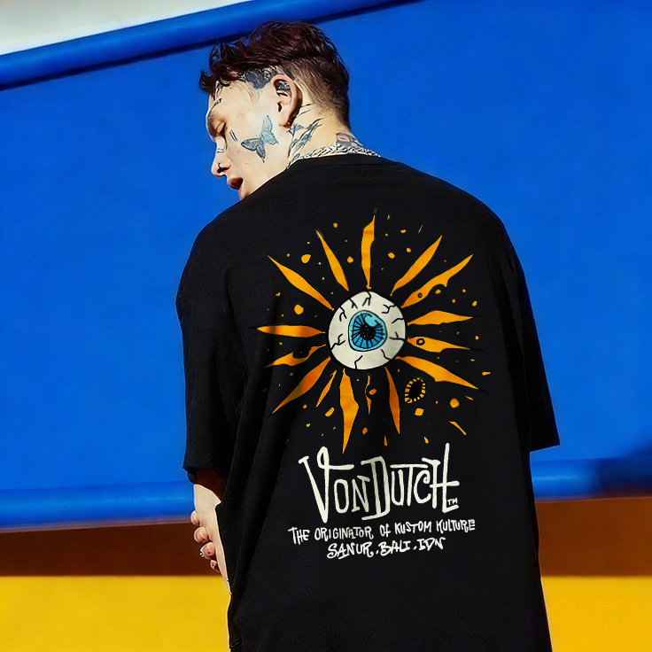 Von Dutch Sanur Bali Sunburst Eyeball Kustom Kulture Printed Men's T-shirt
