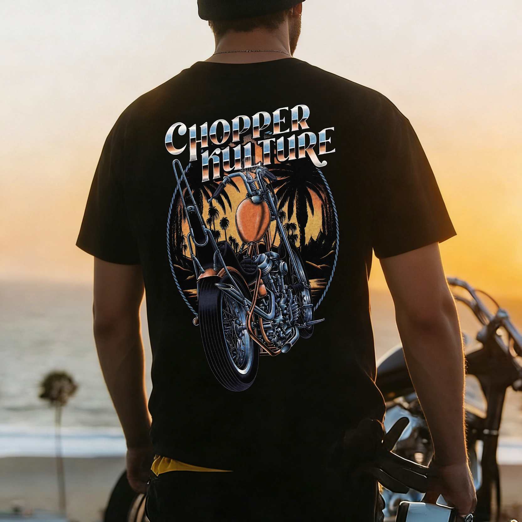 Chopper Kulture With Palm Trees And Sunset Printed Men's T-shirt