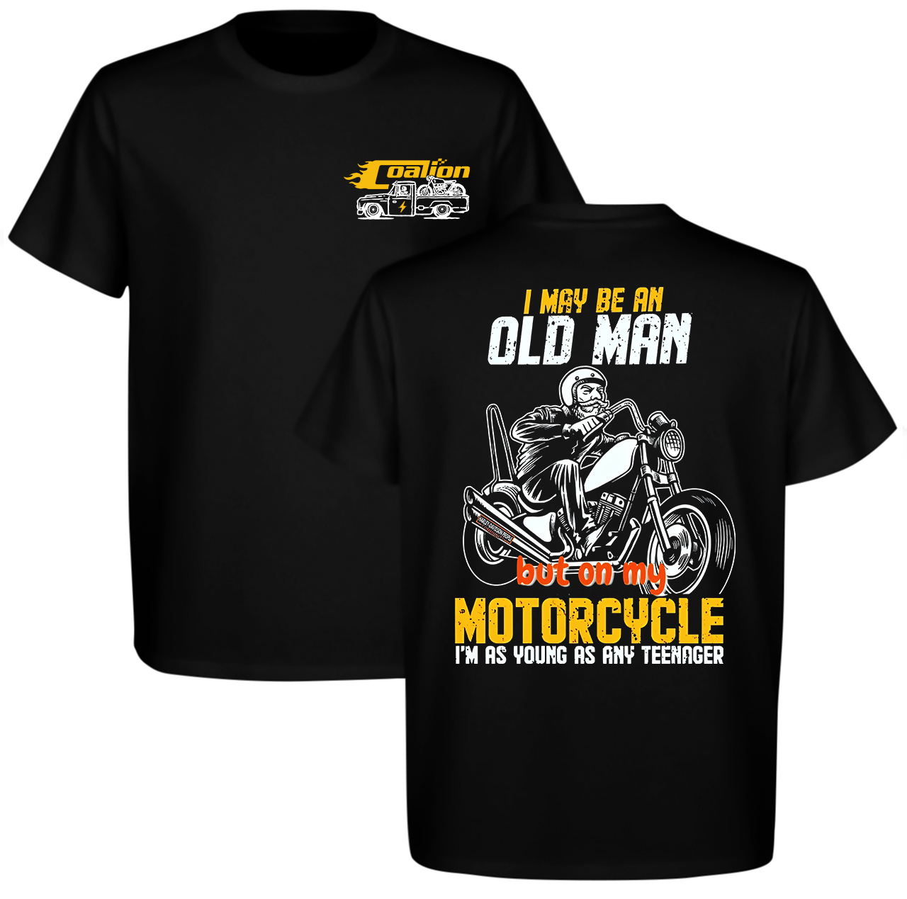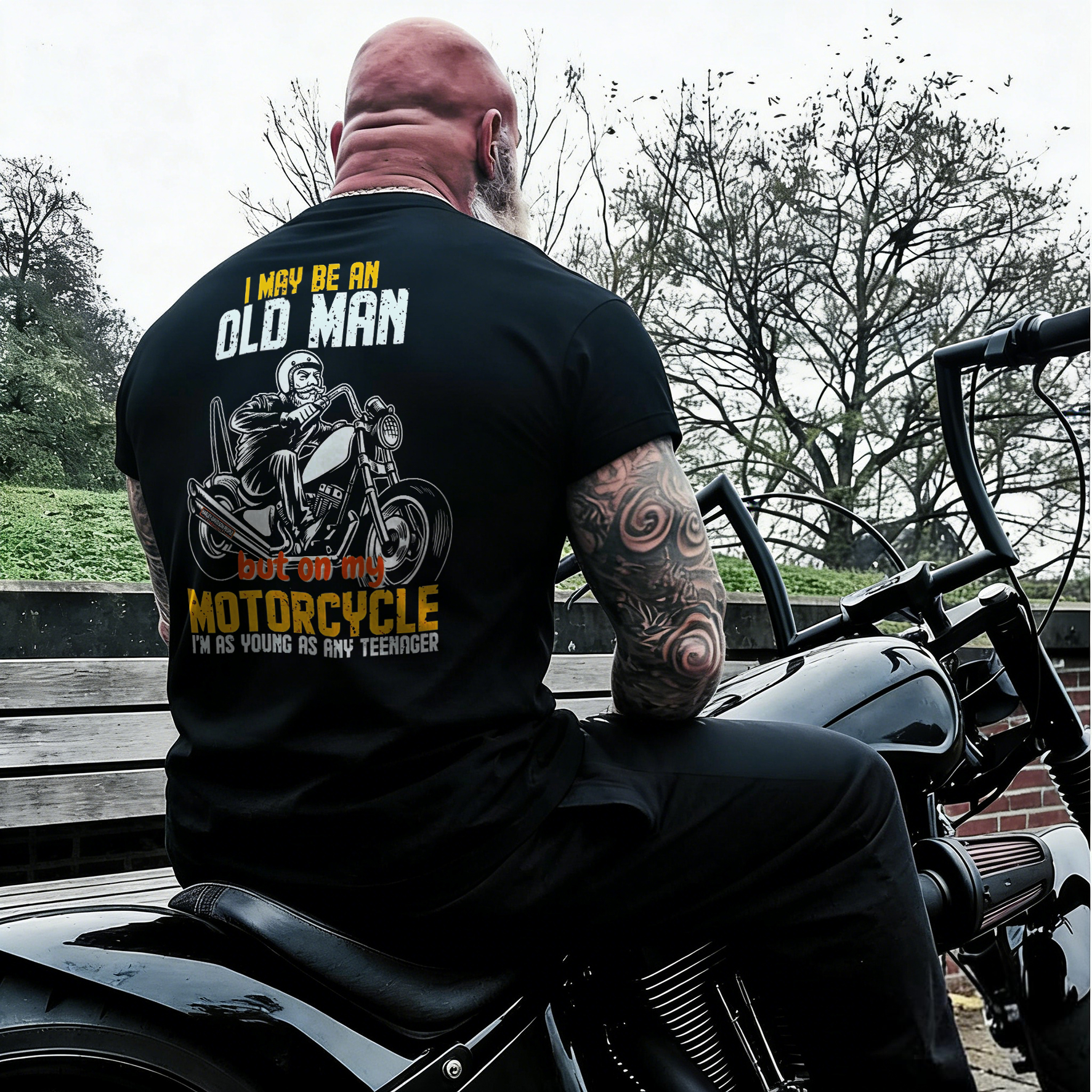 I May Be An Old Man But On My Motorcycle I'm As Young As Any Teenager Printed Men's T-shirt