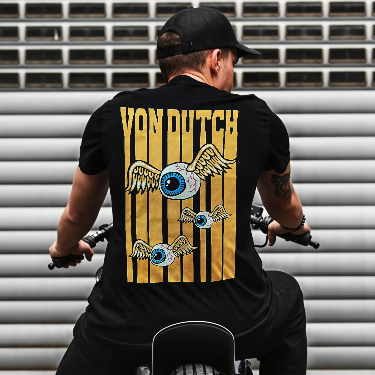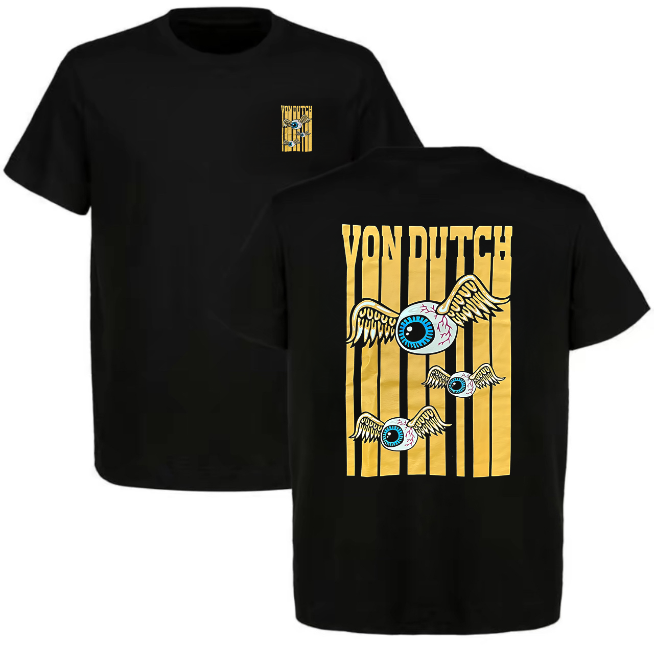 Von Dutch Winged Eyes Golden Stripes Printed Men's T-shirt