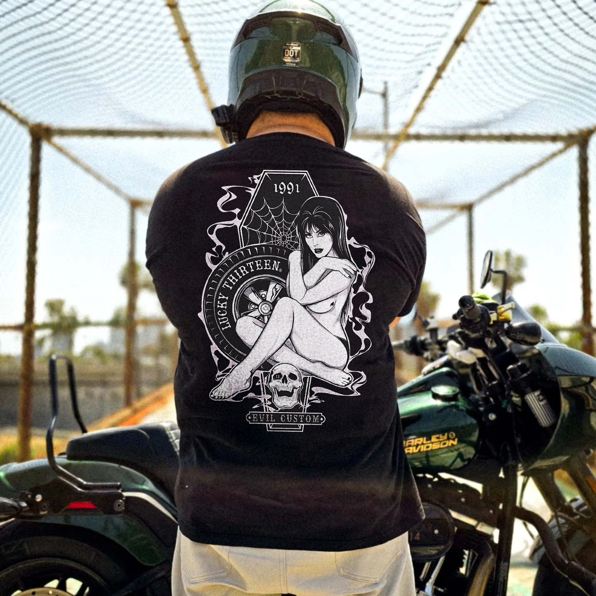 1991 Lucky Thirteen Evil Custom Printed Men's T-shirt