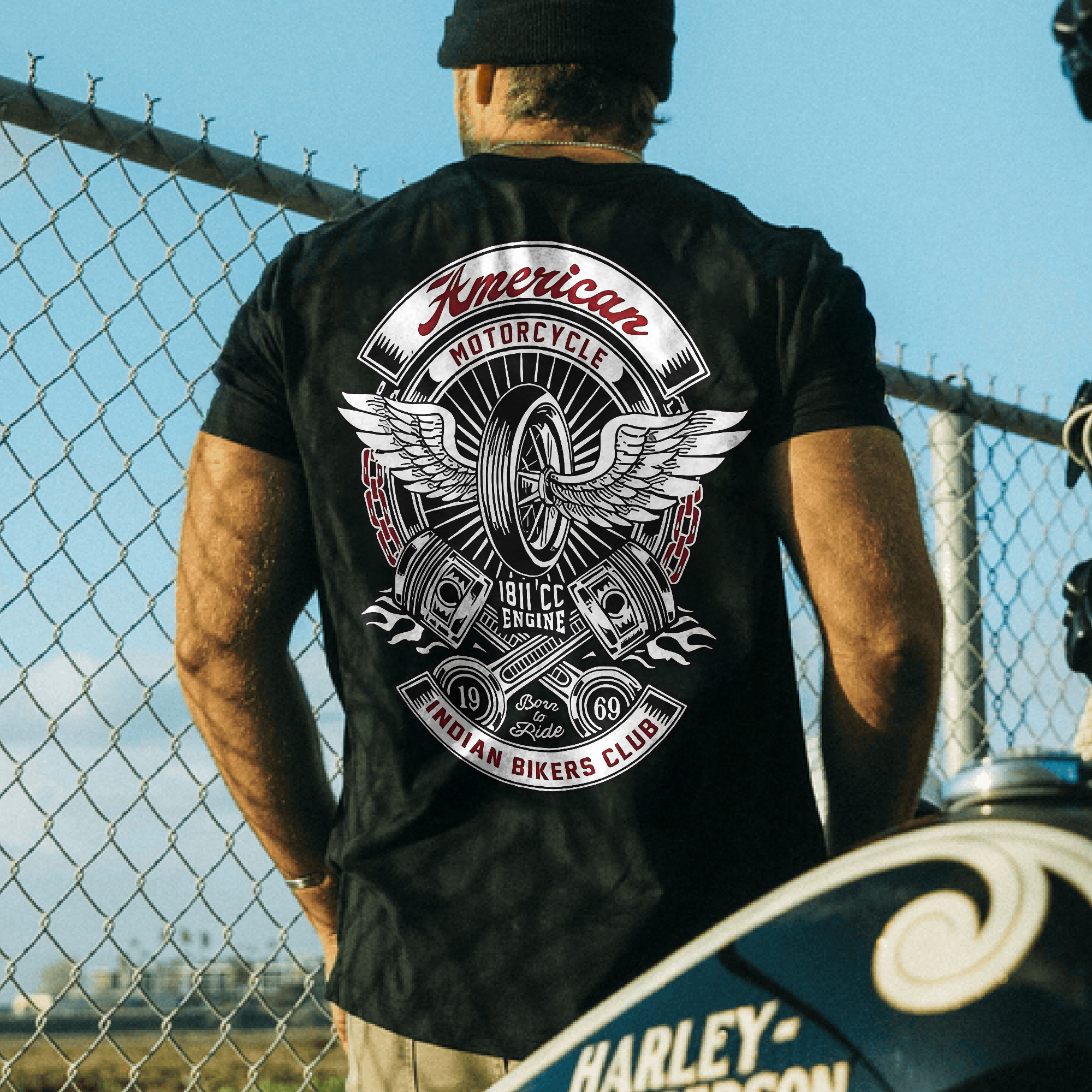 American Motorcycle 1811 Cc Engine 1969 Born To Ride Indian Bikers Club Printed Men's T-shirt