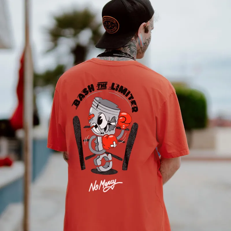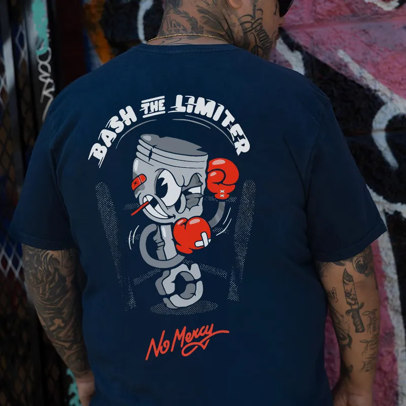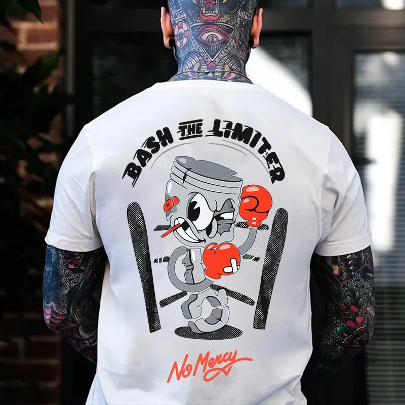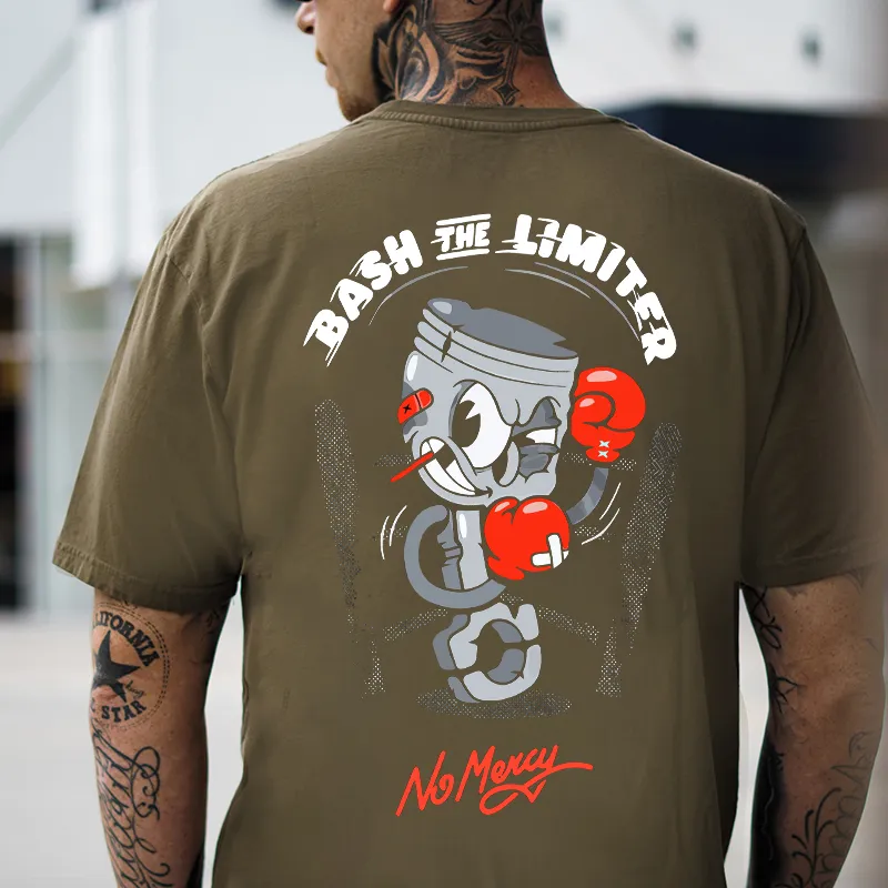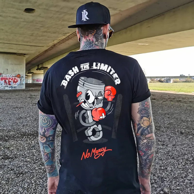 BASH THE LIMITER No Mercy Fighting Tool Man Graphic Black Print T-shirt