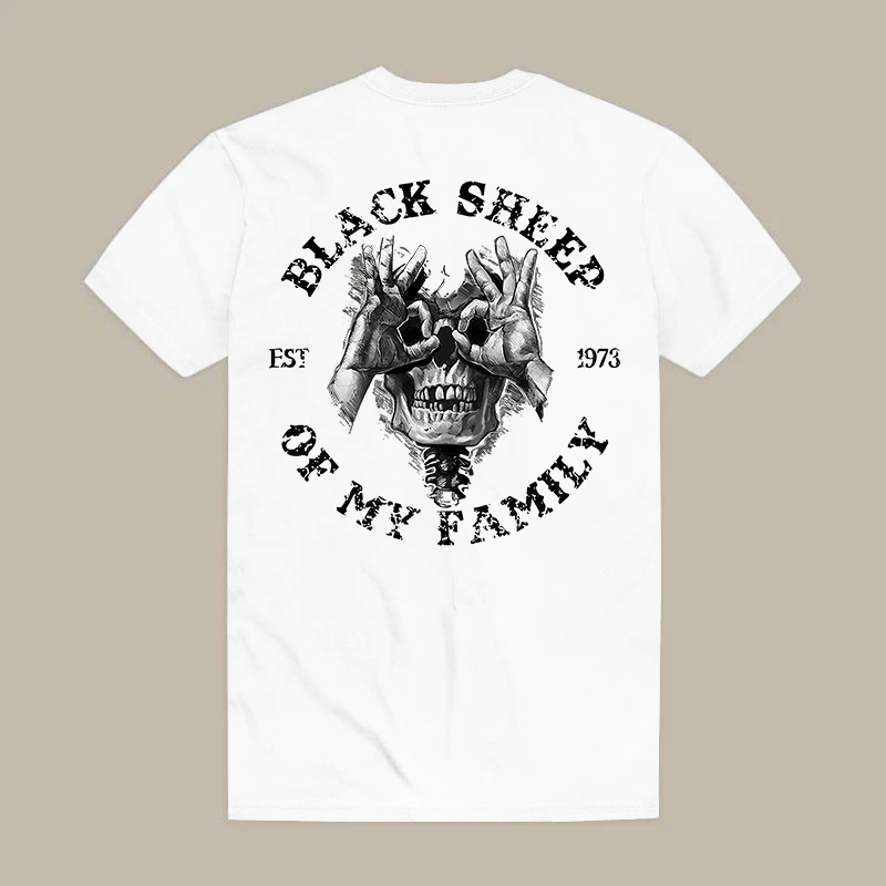 BLACK SHEEP OF MY FAMILY Skull Black Print T-Shirt