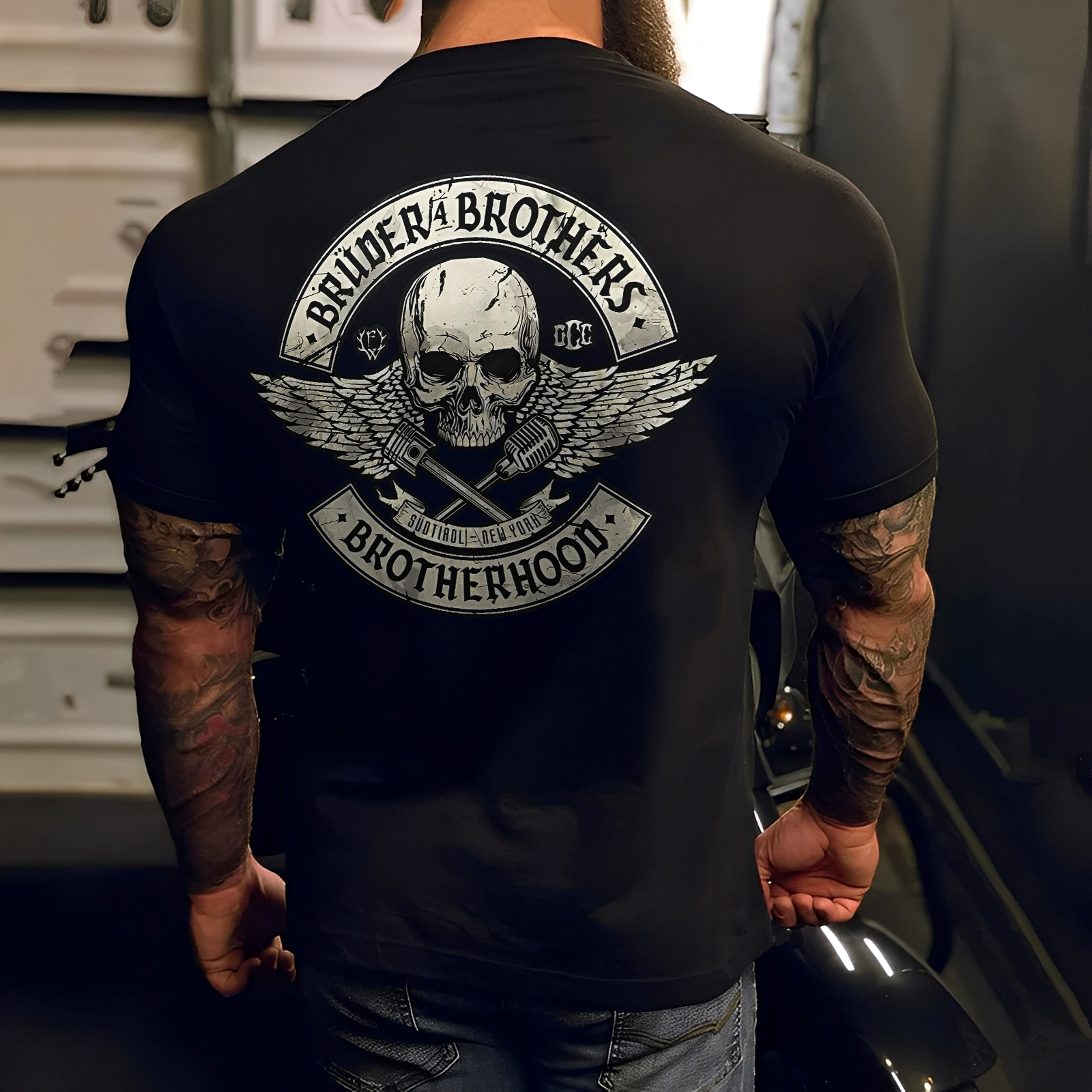 Brüder & Brothers Brotherhood Outlaw Rock Club Printed Men's T-shirt
