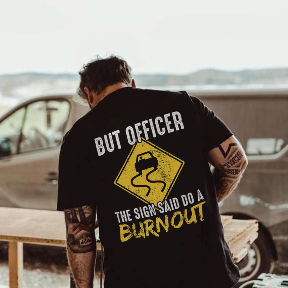 But Officer The Sign Said Do A Burn Out Printed Men's T-shirt