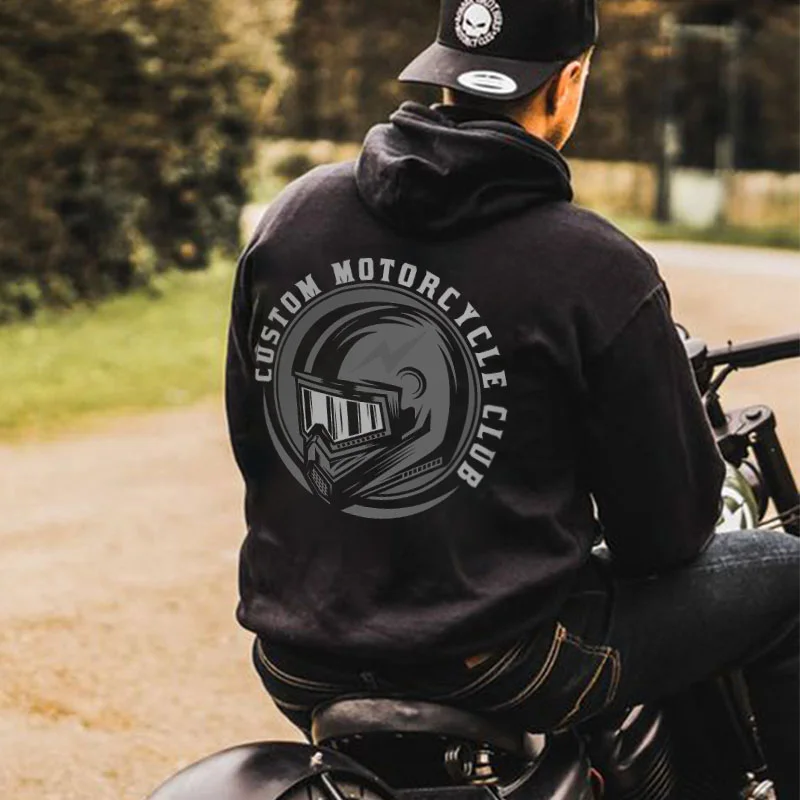 CUSTOM MOTORCYCLE CLUB Casual Graphic Black Print Hoodie