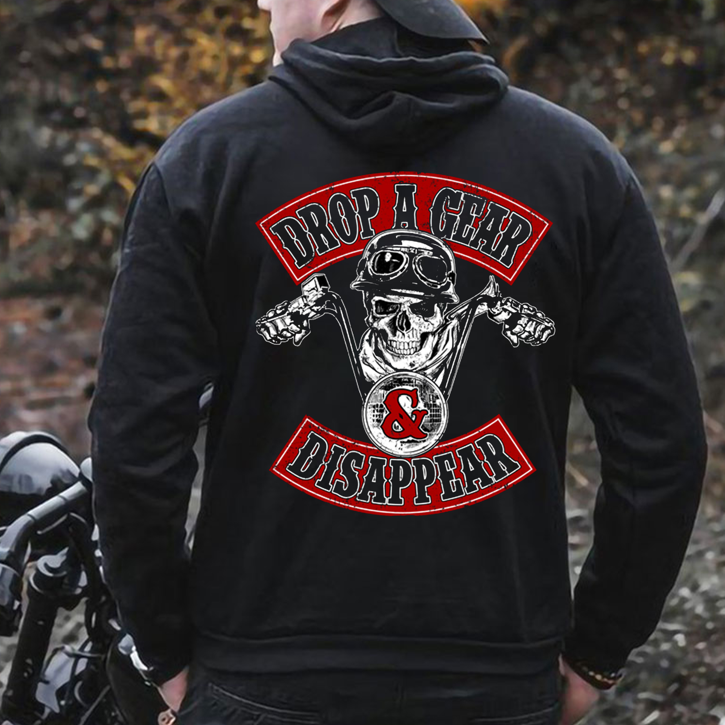 DROP A GEAR DISAPPEAR Skeleton Motorcyclist Print Men's Hoodie