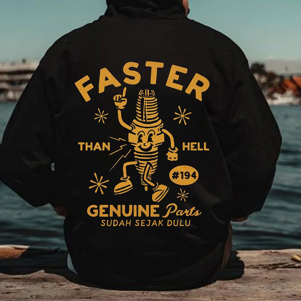 FASTER GENUINE Motorcycle Items Graphic Causal Black Print Hoodie