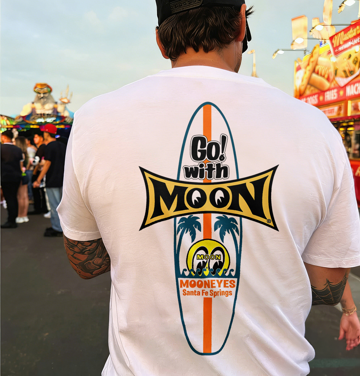 Go With Moon Mooneyes Surfboard Retro Printed Men's T-shirt