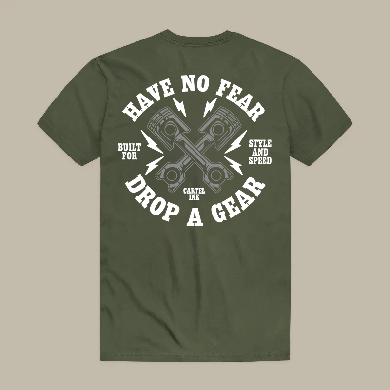 HAVE NO FEAR DROP A GEAR Piston Print Men's T-shirt