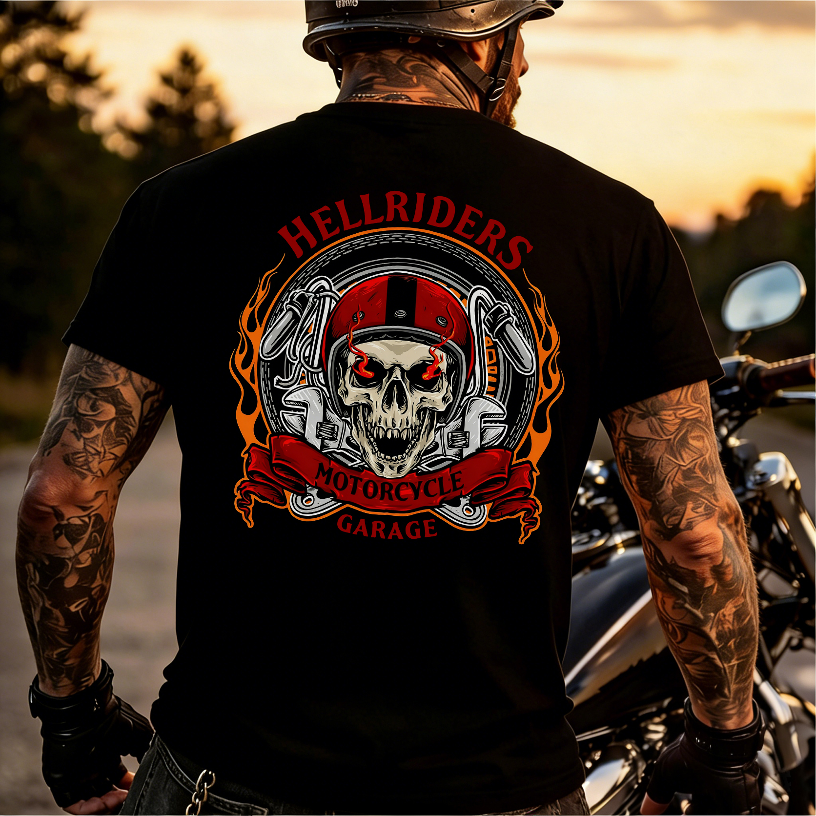 Hellriders Motorcycle Garage Printed Men's T-shirt