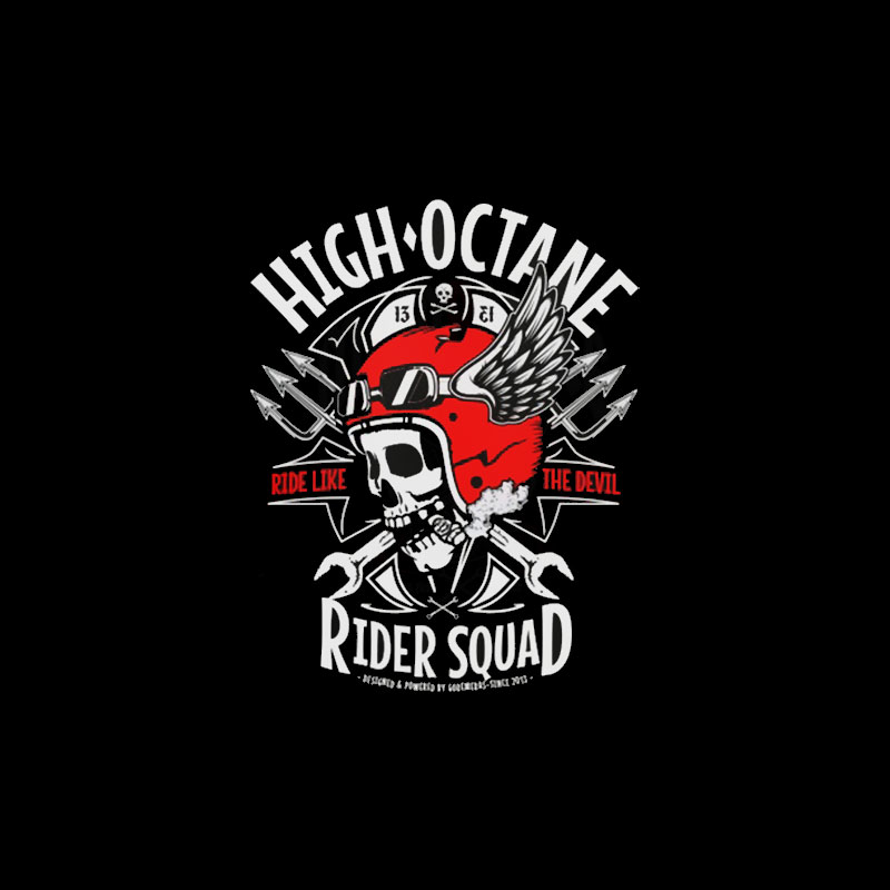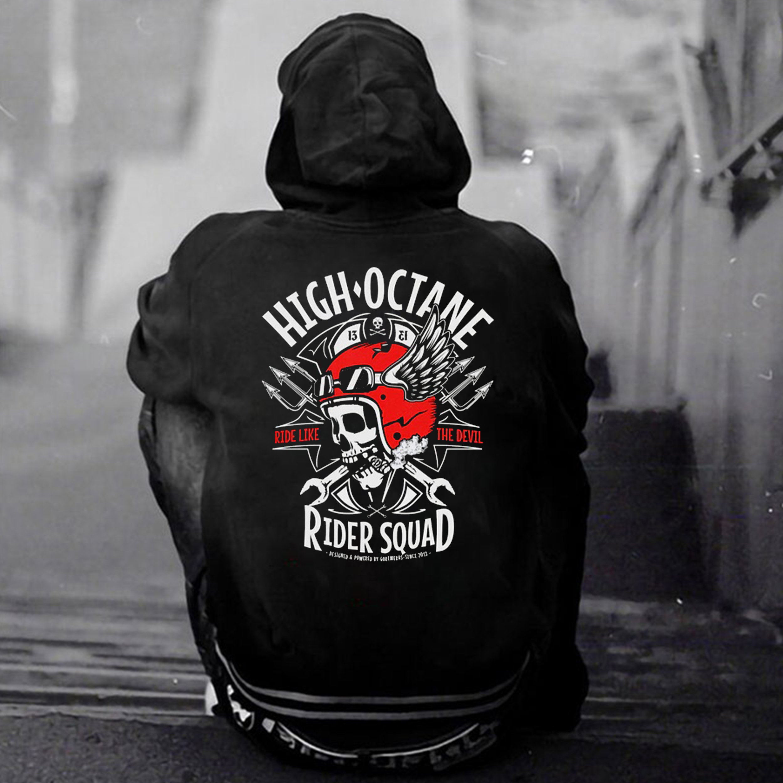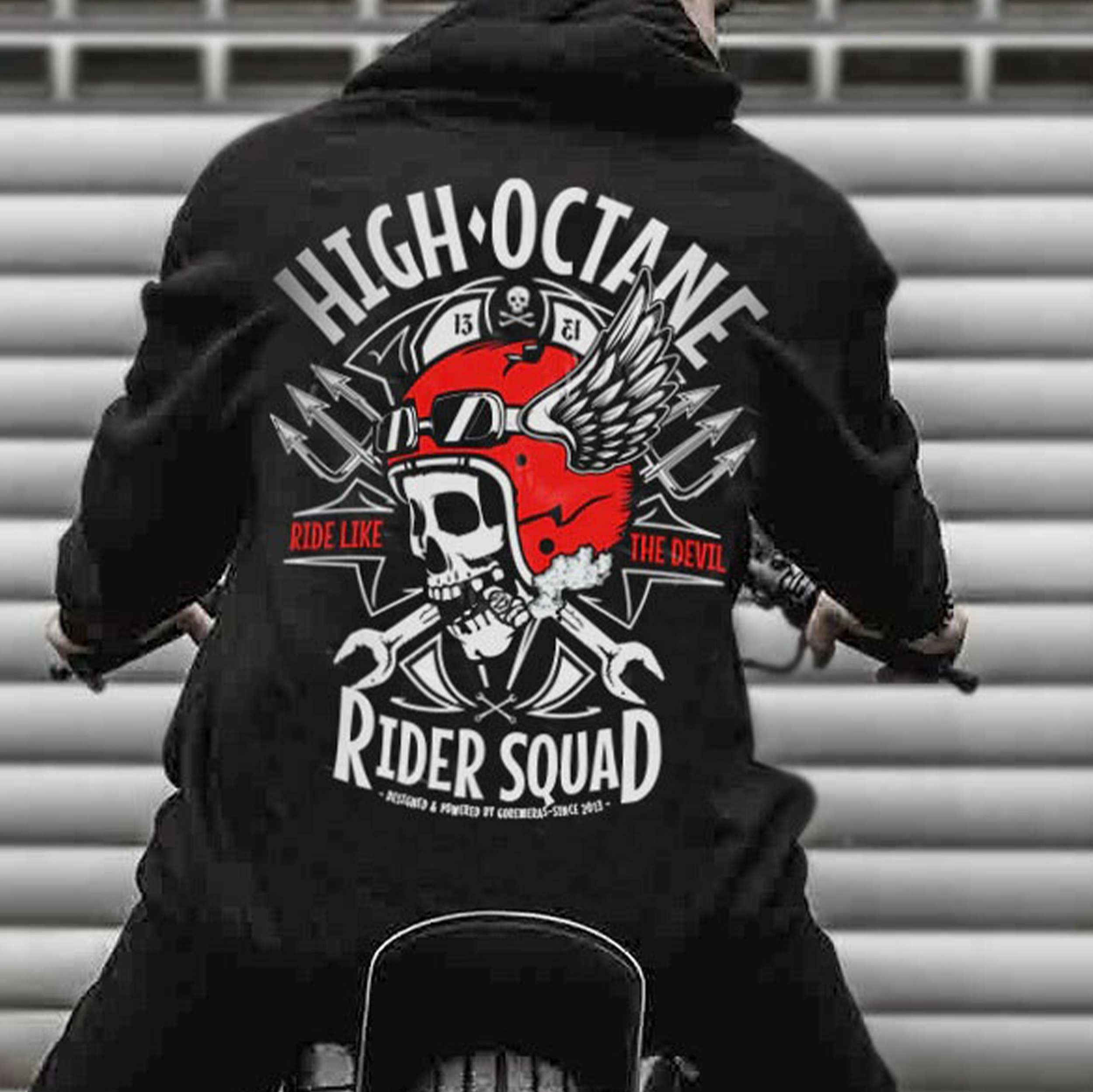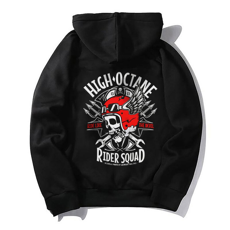 HIGH OCTANE Skull with Helmet Black Print Hoodie