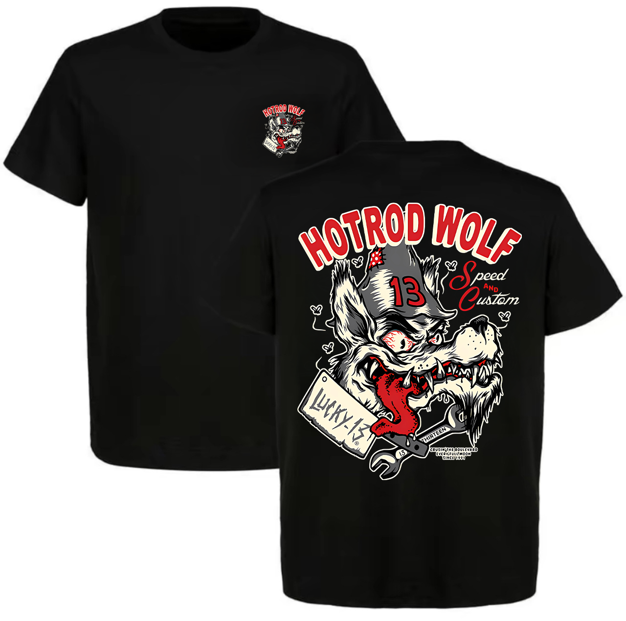 Hotrod Wolf Speed And Custom Lucky 13 Custom Hotrod Speed And Custom Est.1991 Printed Men's T-shirt