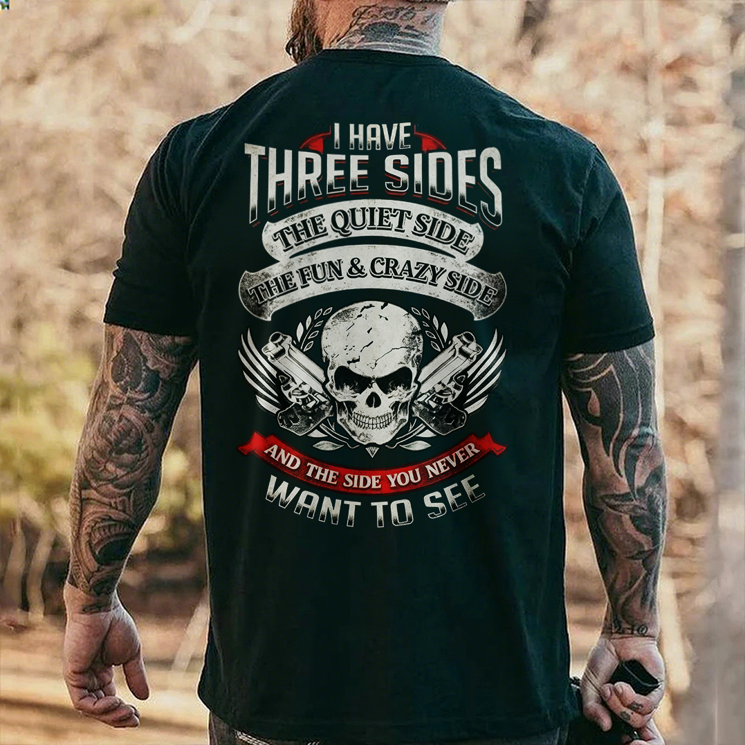 I Have Three Sides The Quiet Side The Fun & Crazy Side And The Side You Never Want To See Printed Men's T-shirt