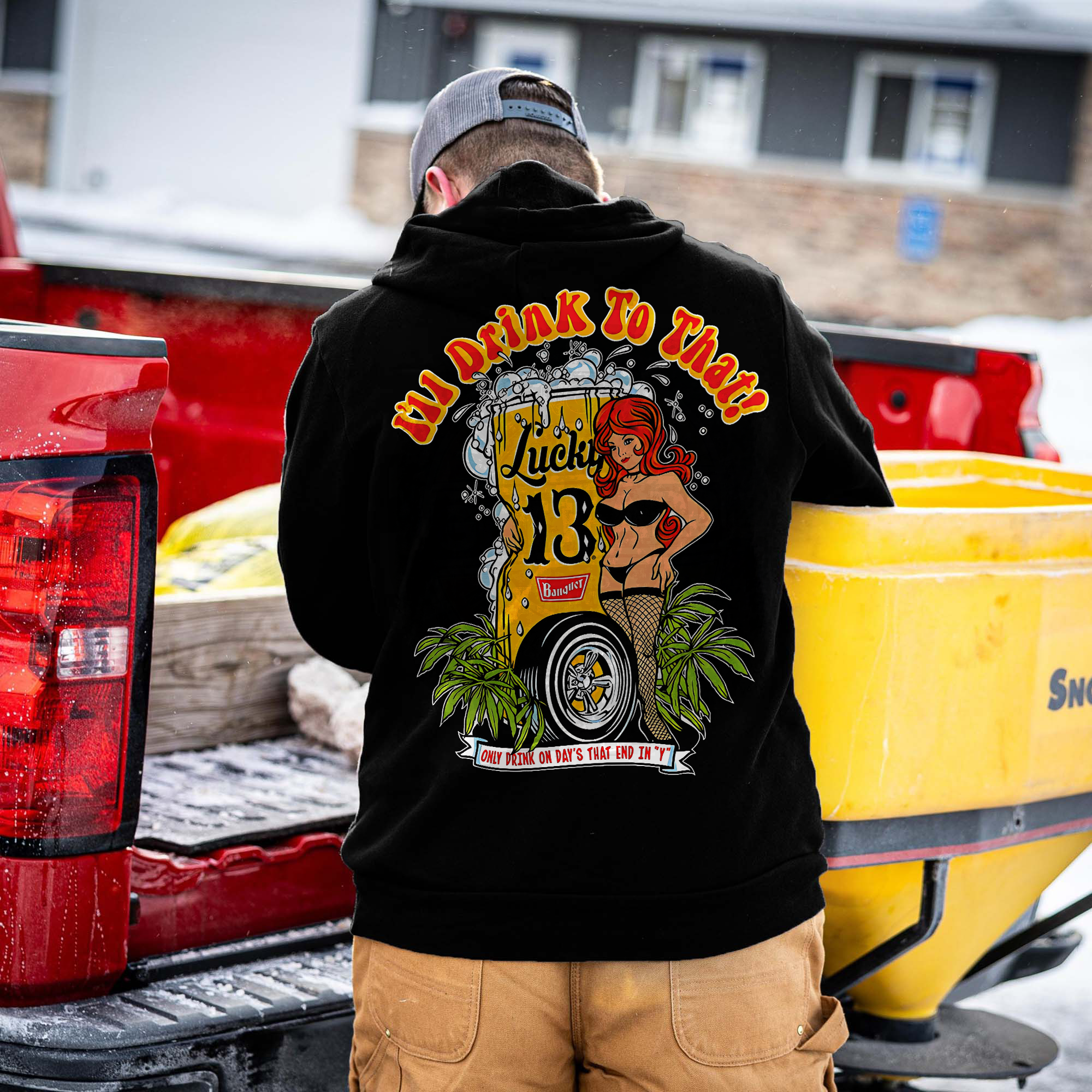 I’ll Drink To That! Lucky 13 Budweiser Only Drink On Days That End In Y Printed Men's Hoodie