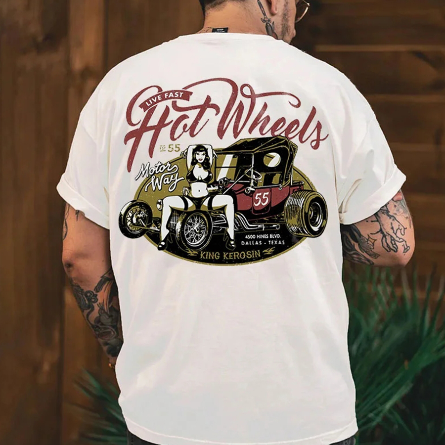 Live Fast Hot Wheels Motor Way King Kerosin 4600 Hines Blvd Dallas Texas Printed Men's T-shirt