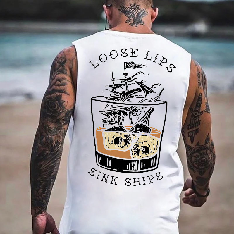 LOOSE LIPS SINK SHIPS Skull Ship Print Men's Vest