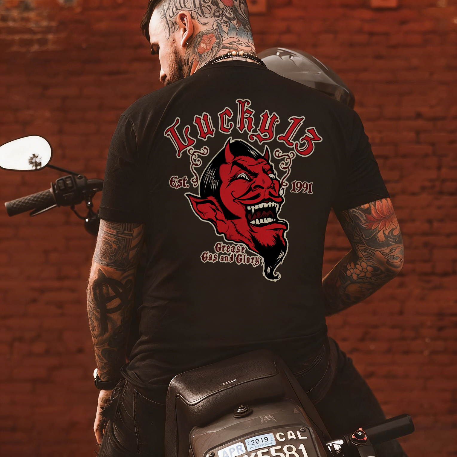 Lucky 13 Est 1991 Grease Gas And Glory Printed Men's T-shirt