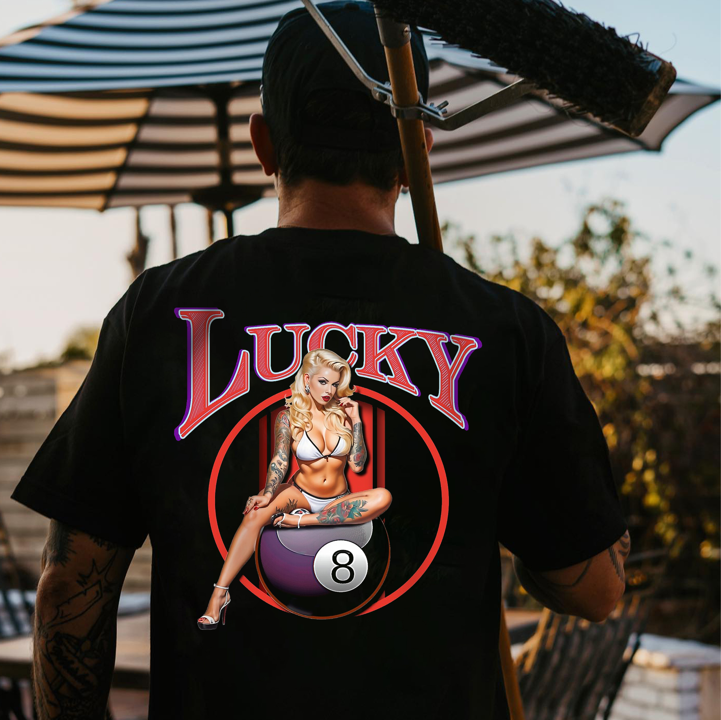 LUCKY Sexy Billiard Girl&8 Ball Print Men's T-shirt