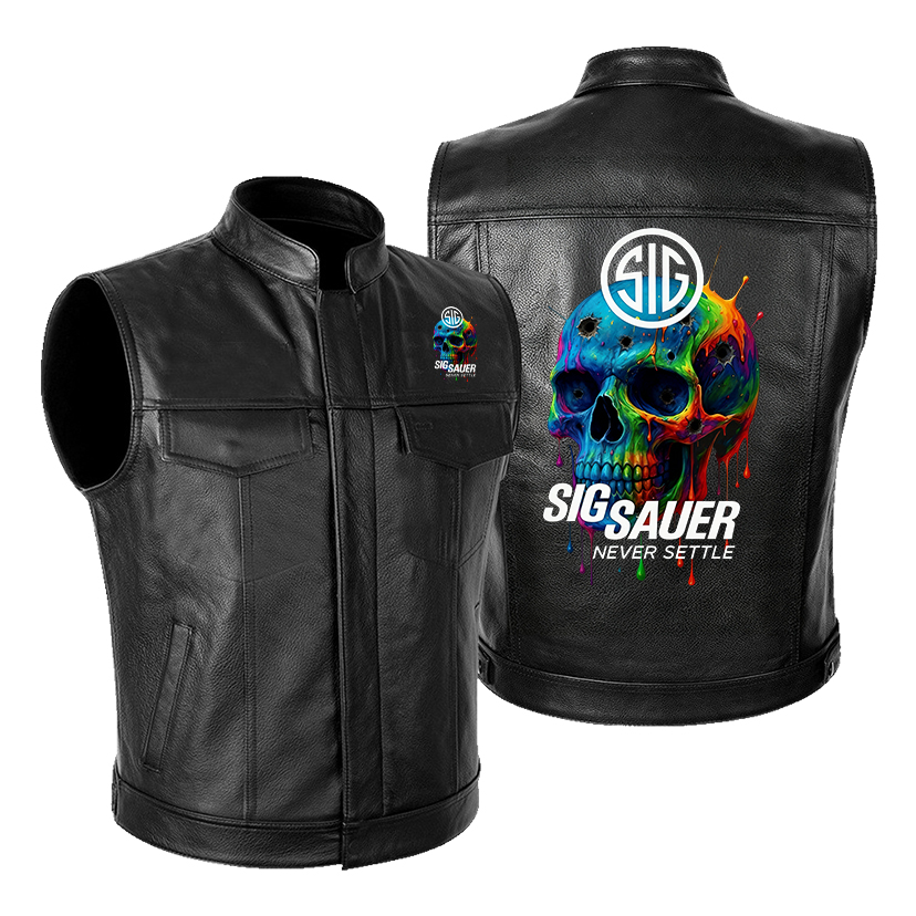 Sig Sauer Skull Print Leather Motorcycle Vest