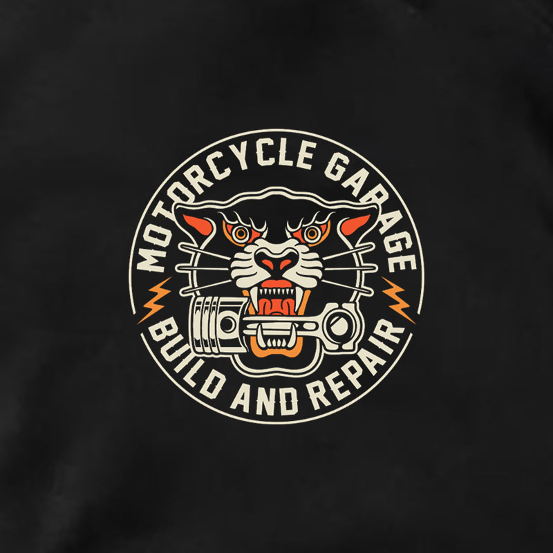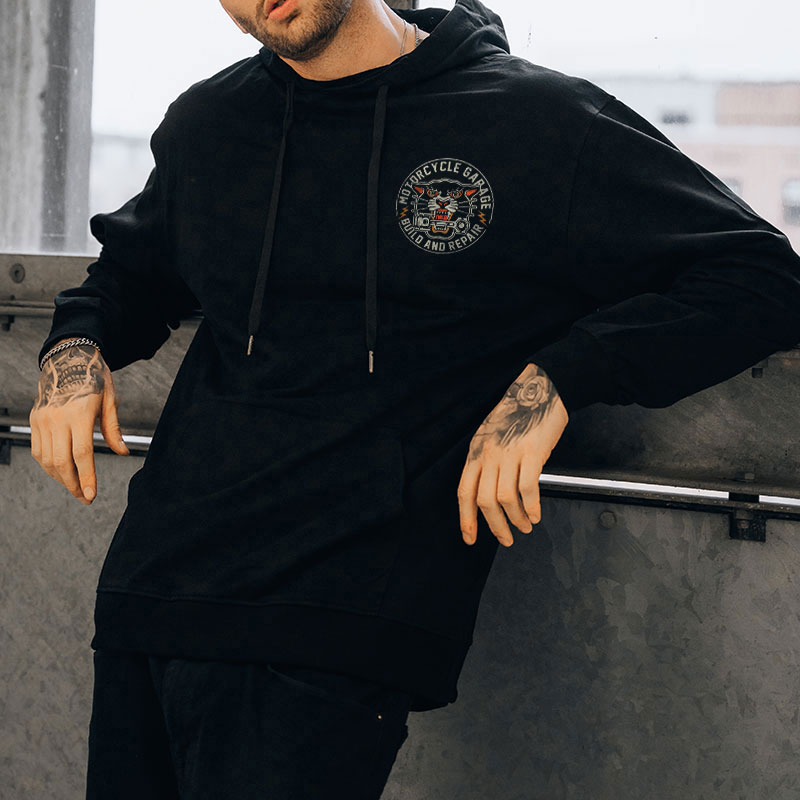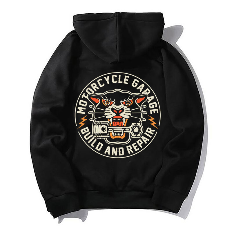 MOTORCYCLE GARAGE BUILD AND REPAIR Leopard Casual Black Print Hoodie