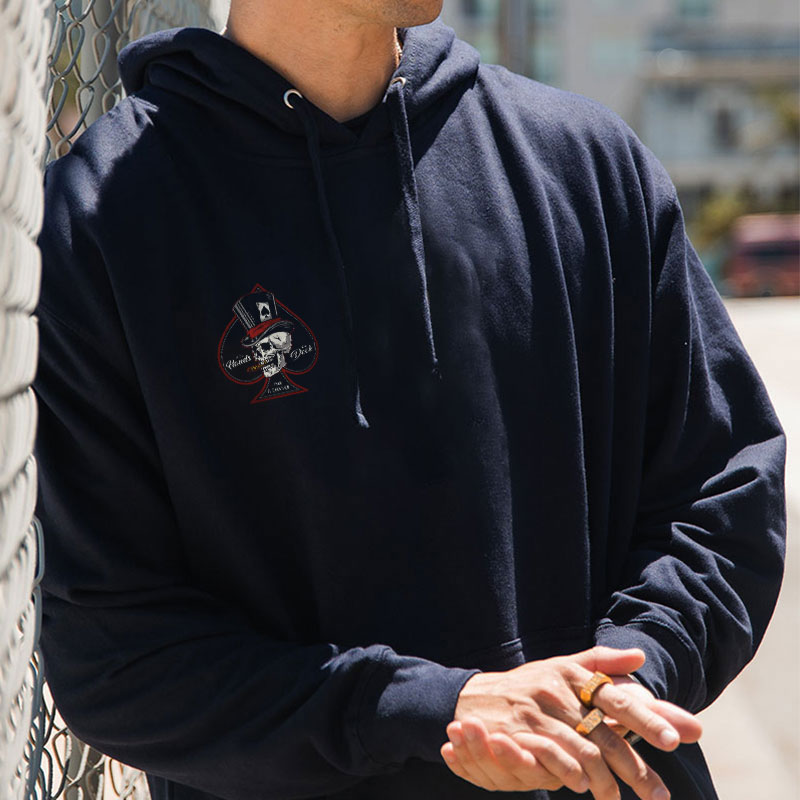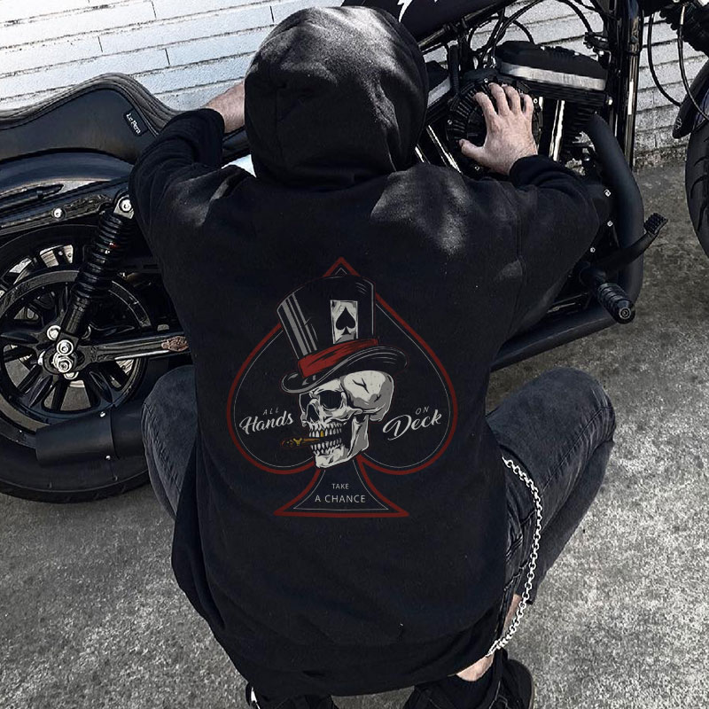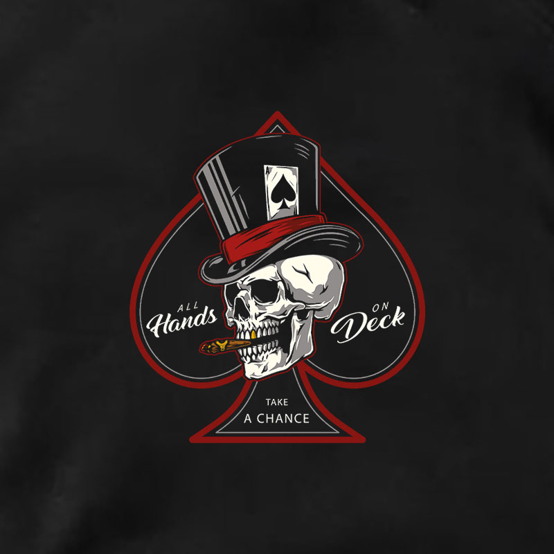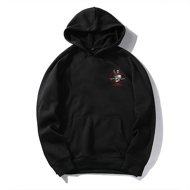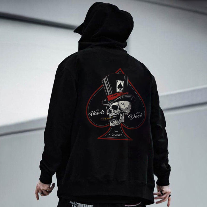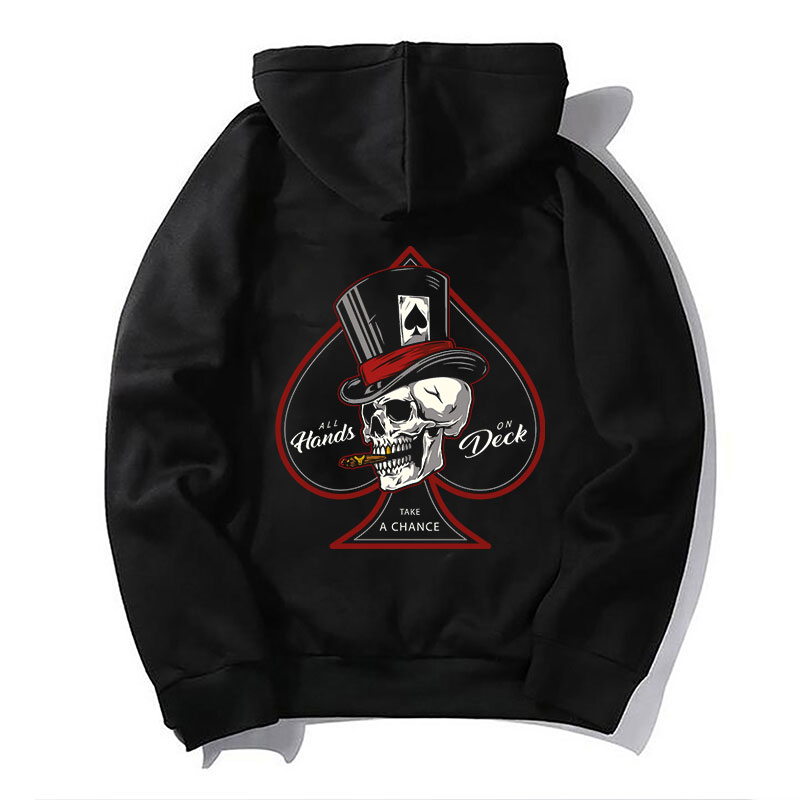 ALL HANDS ON DECK Gentle Skull with Poker Hat Graphic Black Print Hoodie