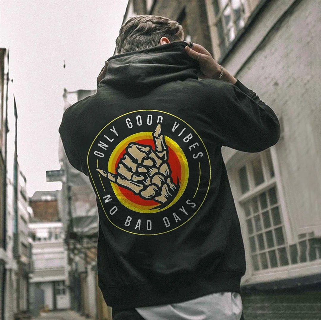 ONLY GOOD VIBES NO BAD DAYS Black Print Hoodie