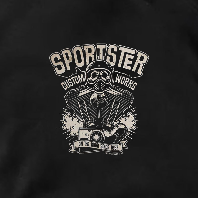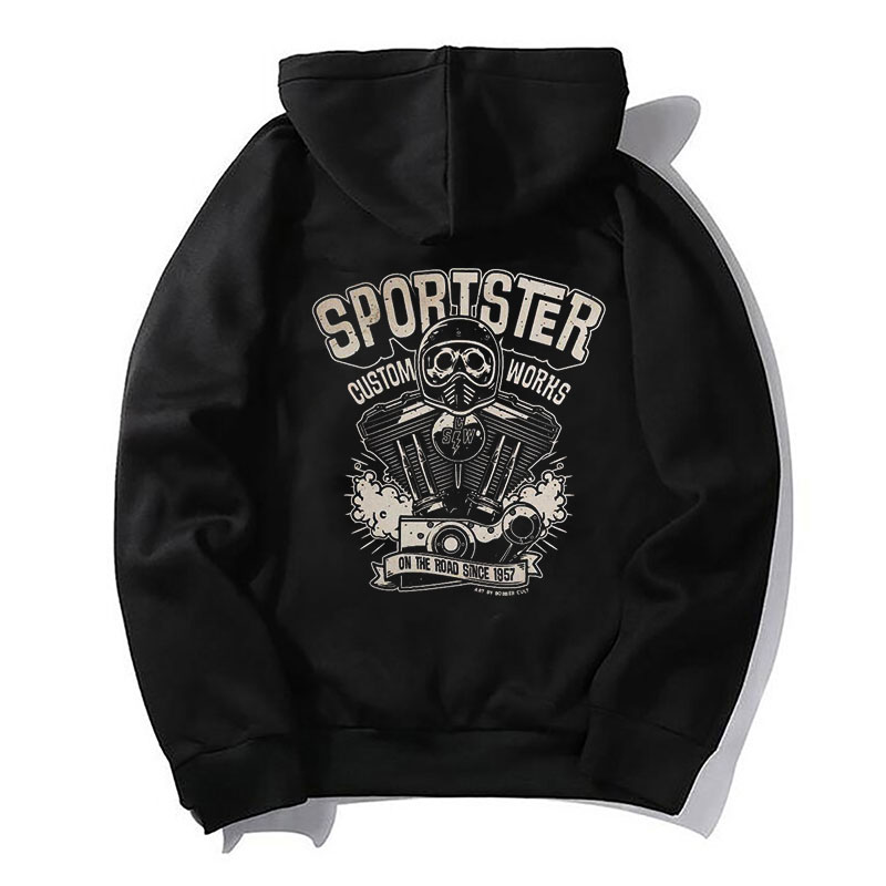 SPORTSTER CUSTOM WORKS Skull with Helmet Casual Black Print Hoodie