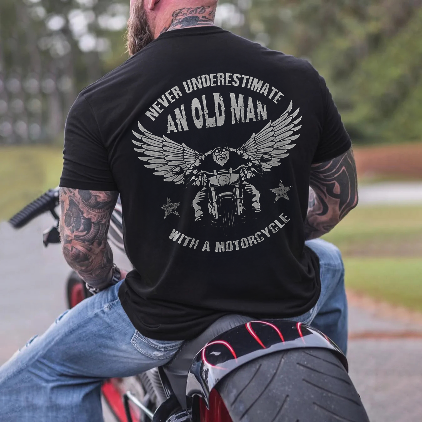 Never Underestimate An Old Man With A Motorcycle Printed Men's T-shirt