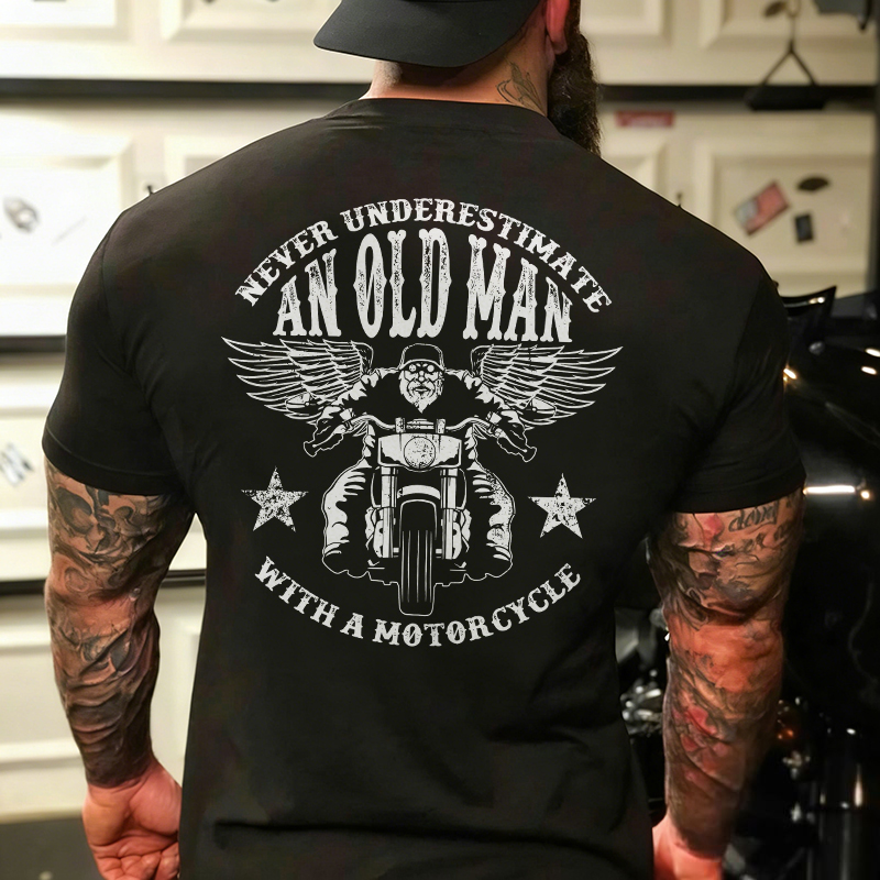 Never Underestimate An Old Man With A Motorcycle Printed Men's T-shirt