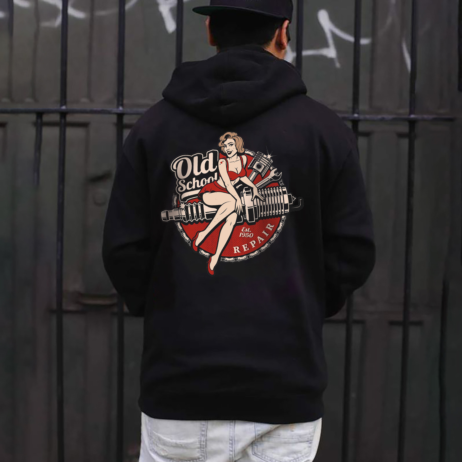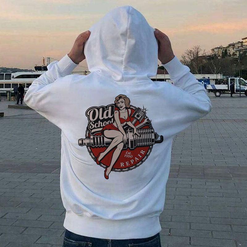OLD SCHOOL Motorcycle Lady Print Men's Hoodie