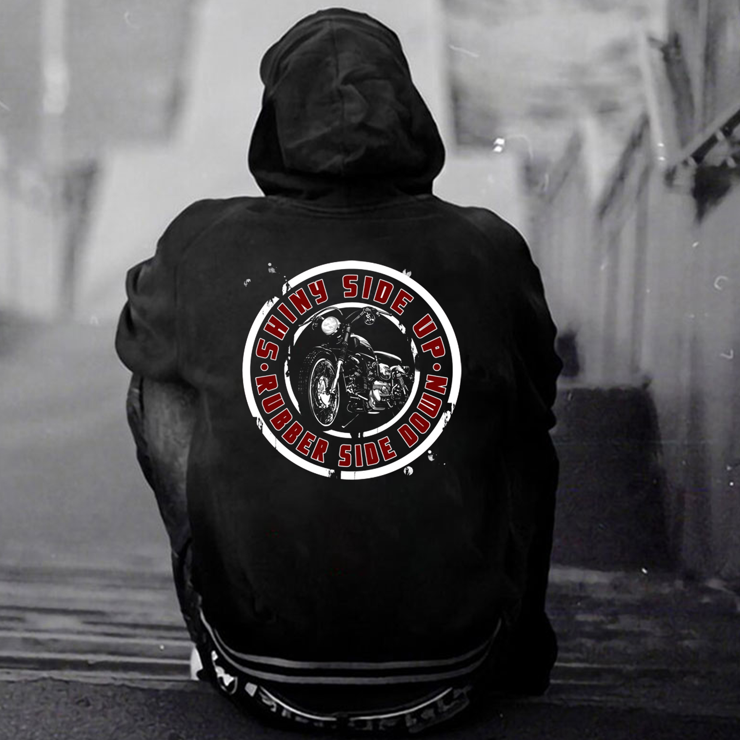 SHINY SIDE UP RUBBER SIDE DOWN Motorcycle Print Men's Hoodie