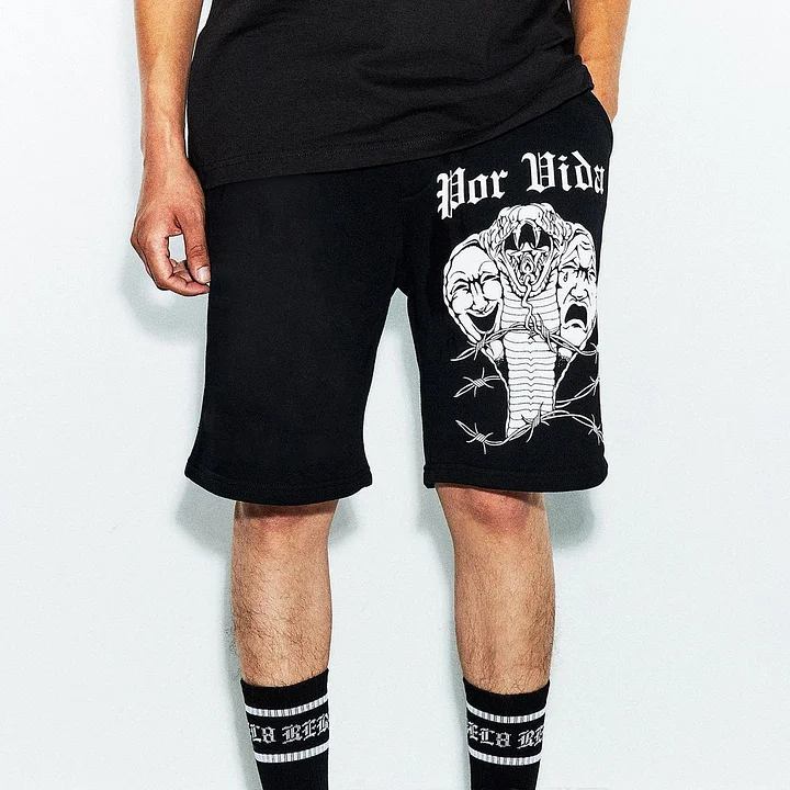 Snake Printed Elastic-waistband Sports Shorts