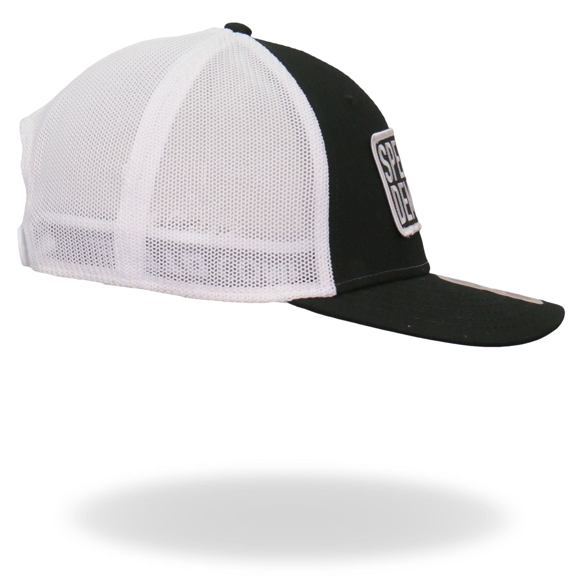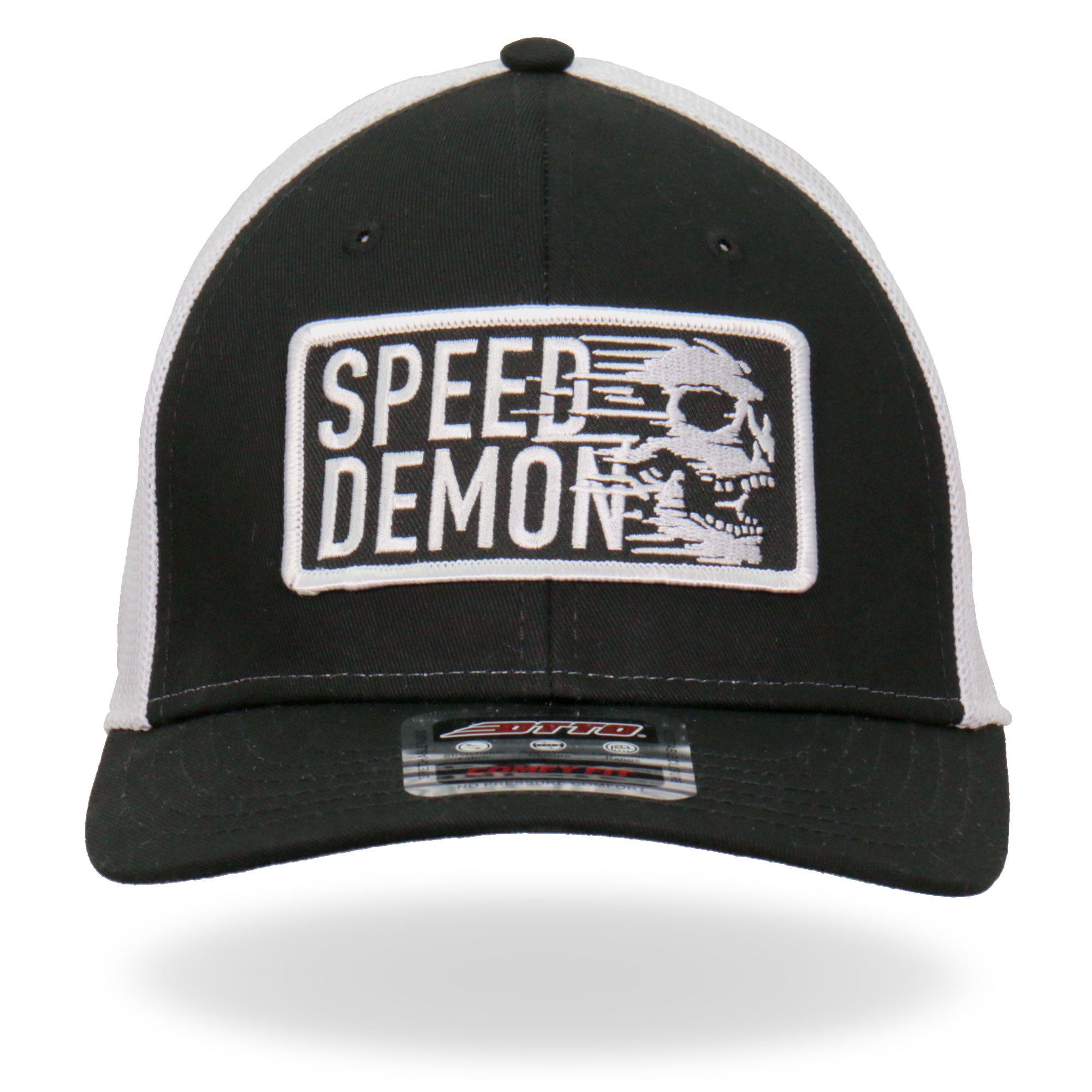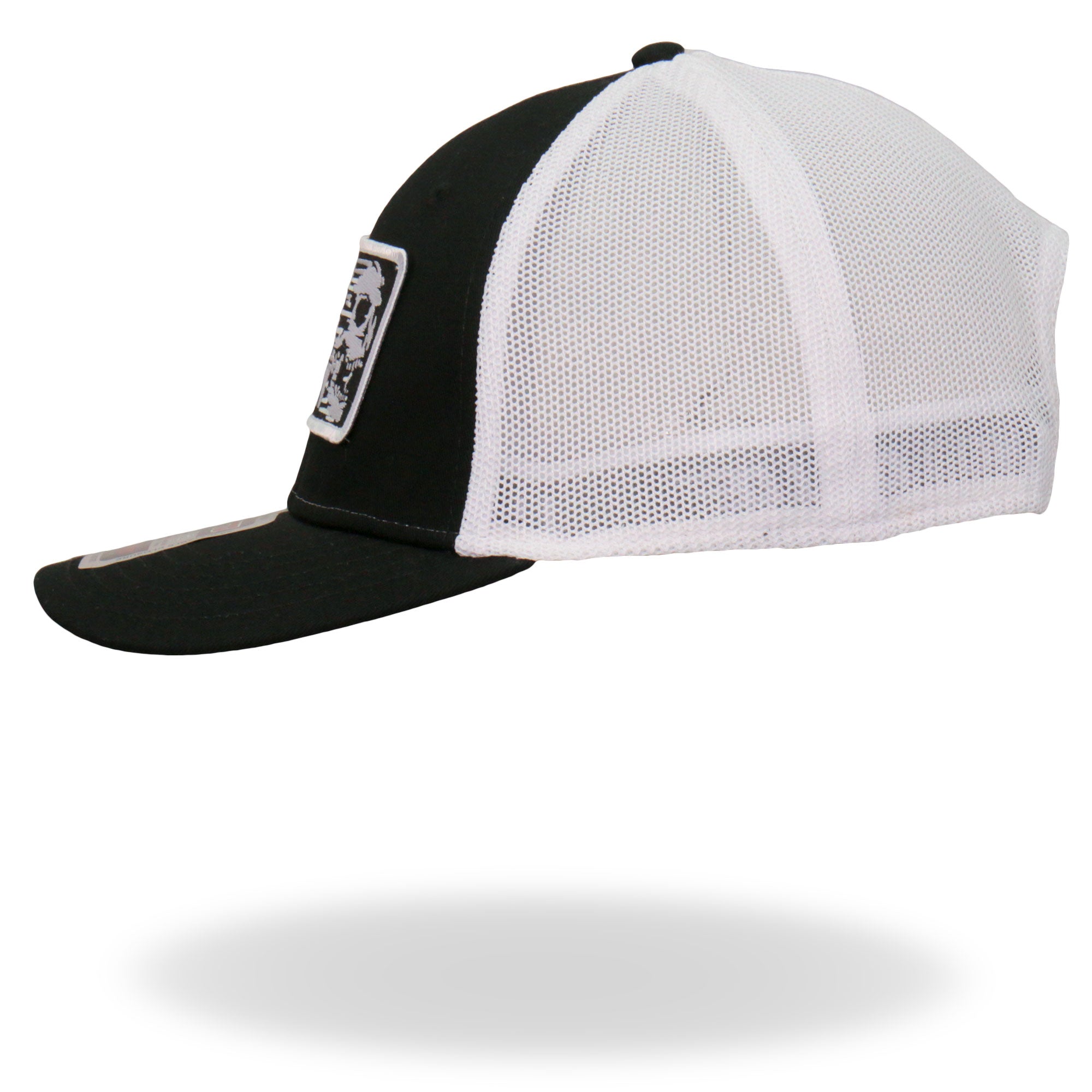 Hot Leathers Snap Back Hat. We use Otto Brand for our hat collection. This is the best snap back flat brim hat in the industry. Its a cotton/polyester blend helps the hat hold its shape for long time use. It is a mesh style back hat with a plastic adjustable tab and features a great Hot Leathers art patch.