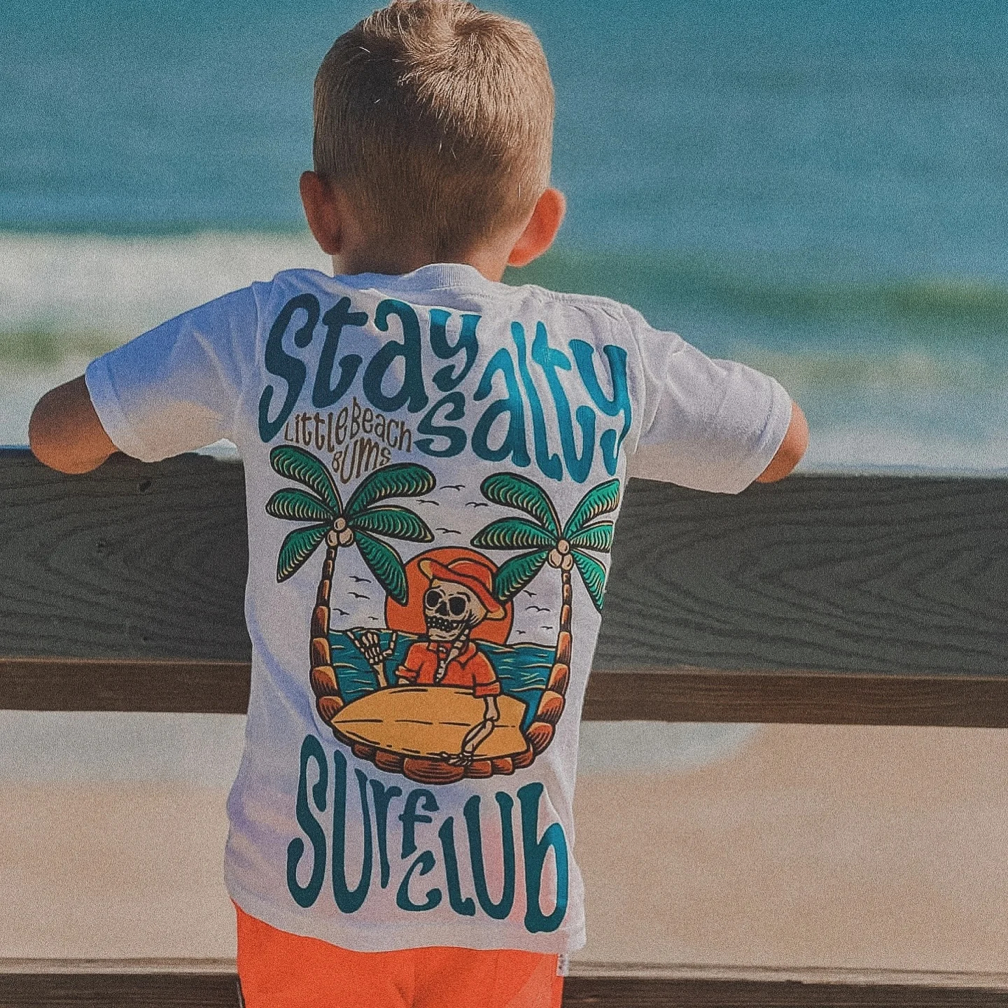 Stay Salty Little Beach Bums Surf Club Print Children's T-shirt