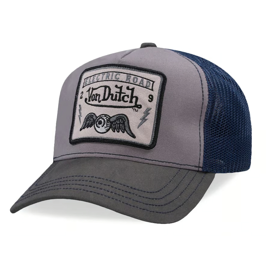 Von Dutch Electric Road Square Patch Gray Trucker Snapback Cap