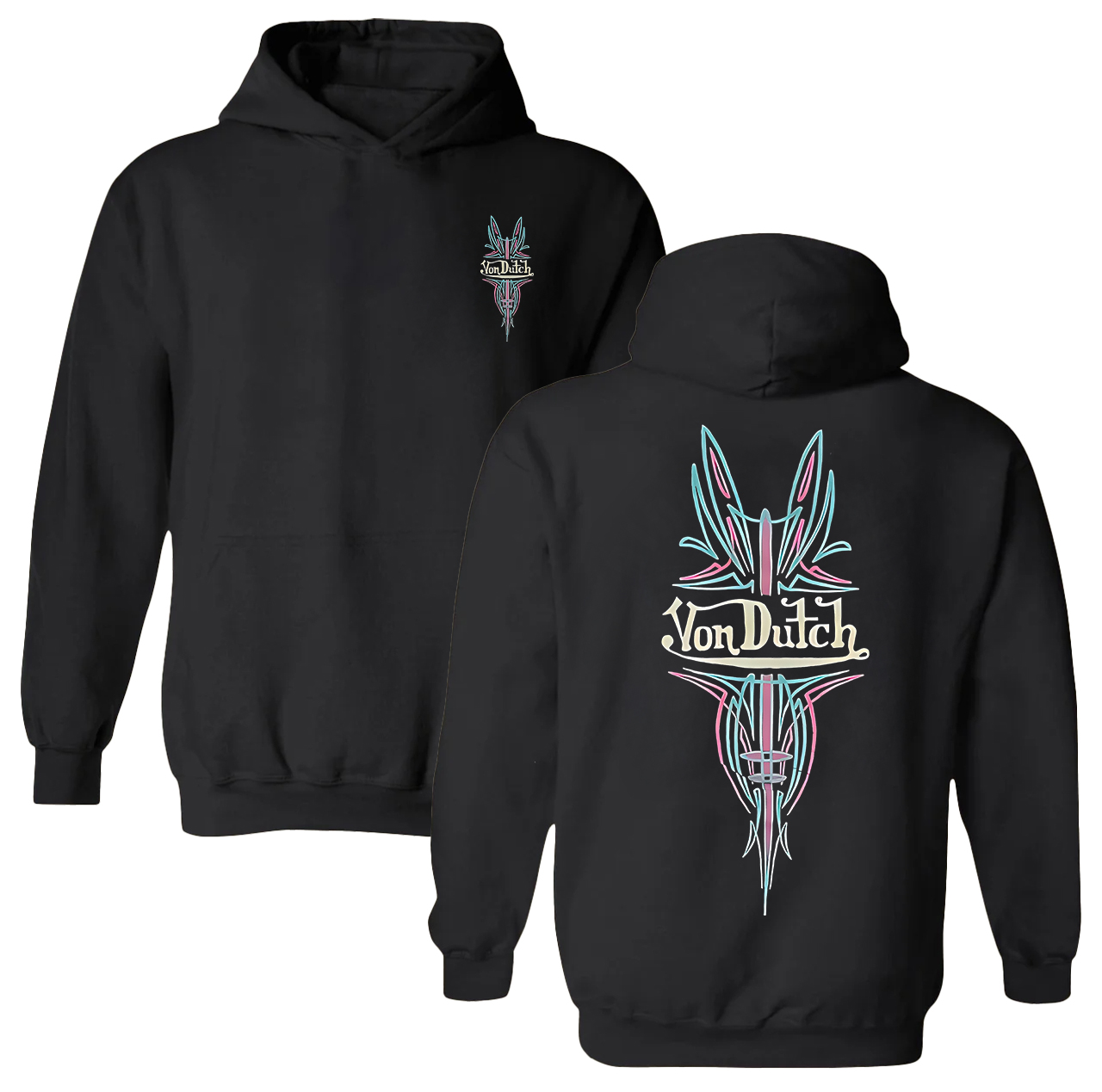 A soft and stretchy hoodie with a range of motion and comfort way beyond your typical cotton hoodie. Small batch garment dying and soft-to-the-touch water-based printing offers unique shades that make it more contemporary look.