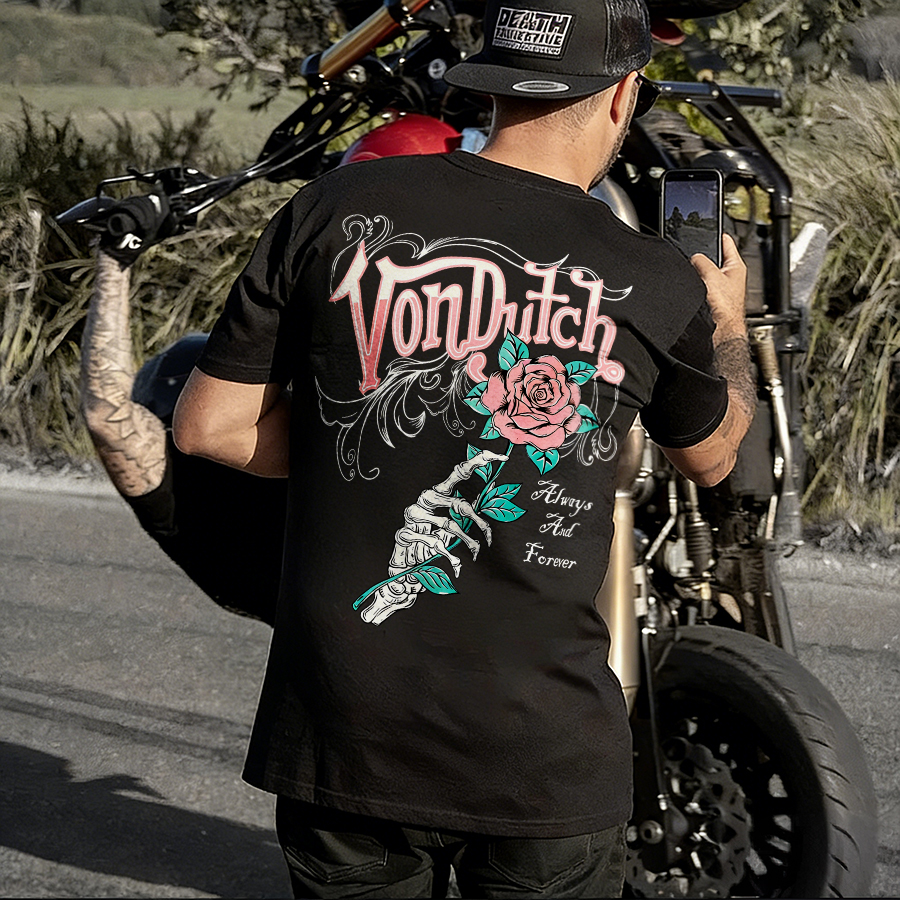 Von Dutch Skeleton Hand Rose Always And Forever Printed Men's T-shirt