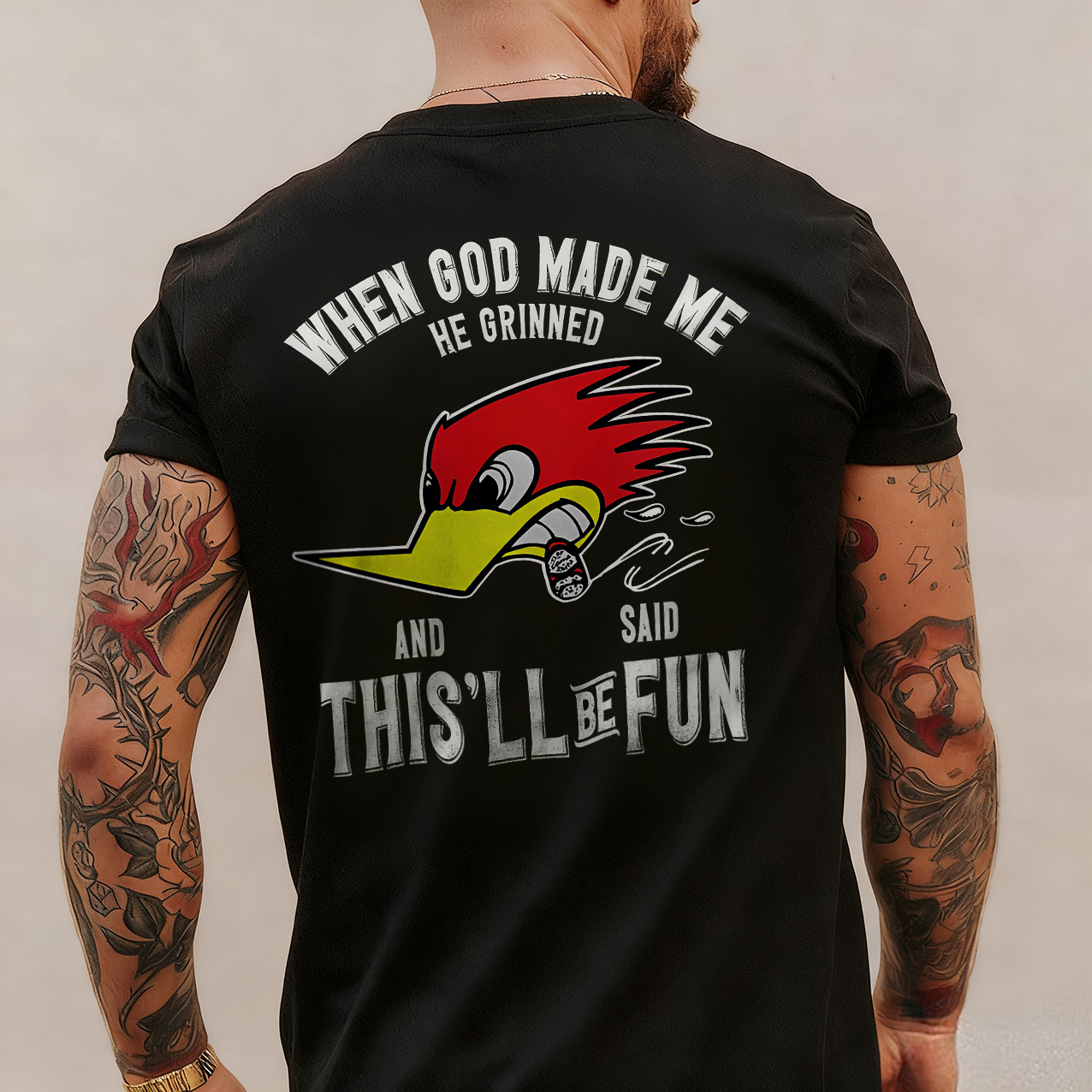 When God Made Me He Grinned And Said This'll Be Fun Printed Men's T-shirt
