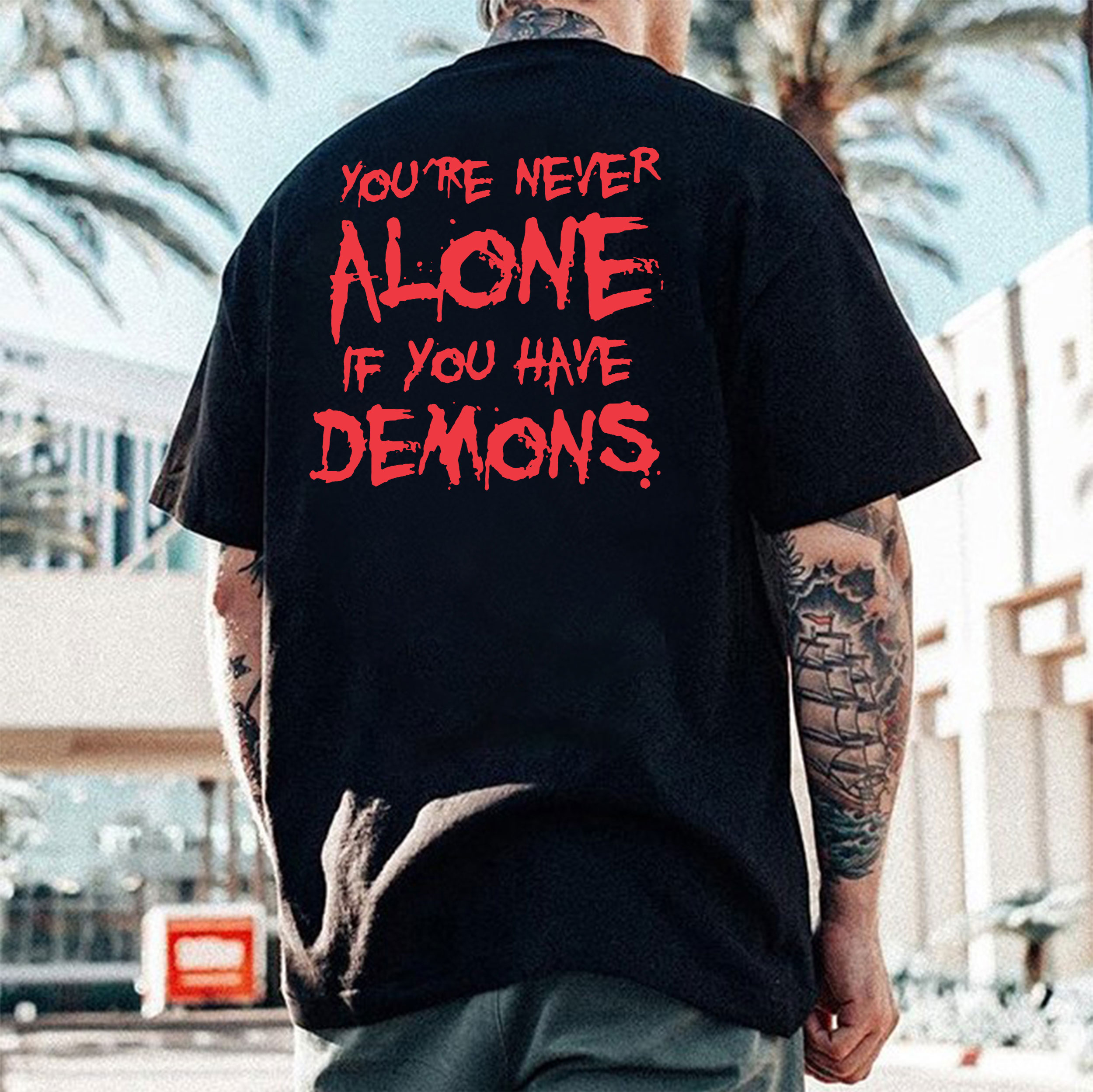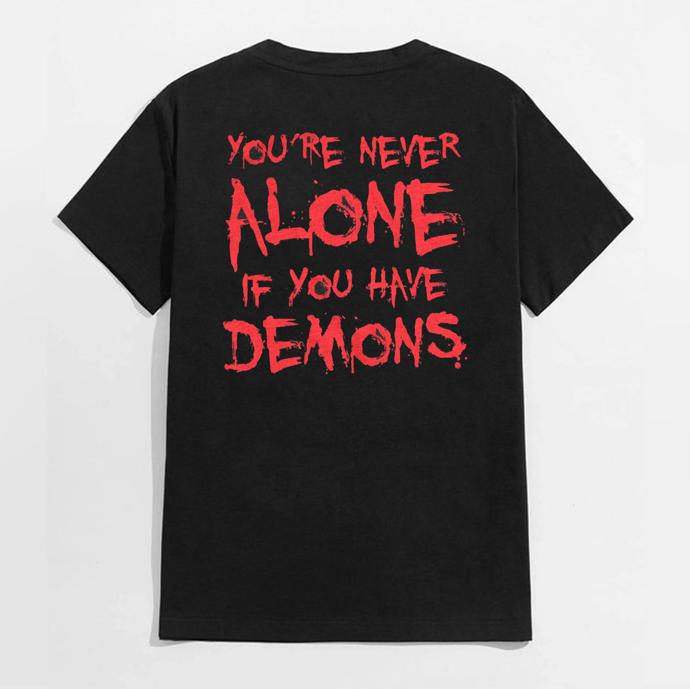 YOU'RE NEVER ALONE IF YOU HAVE DEMONS Black Print T-shirt